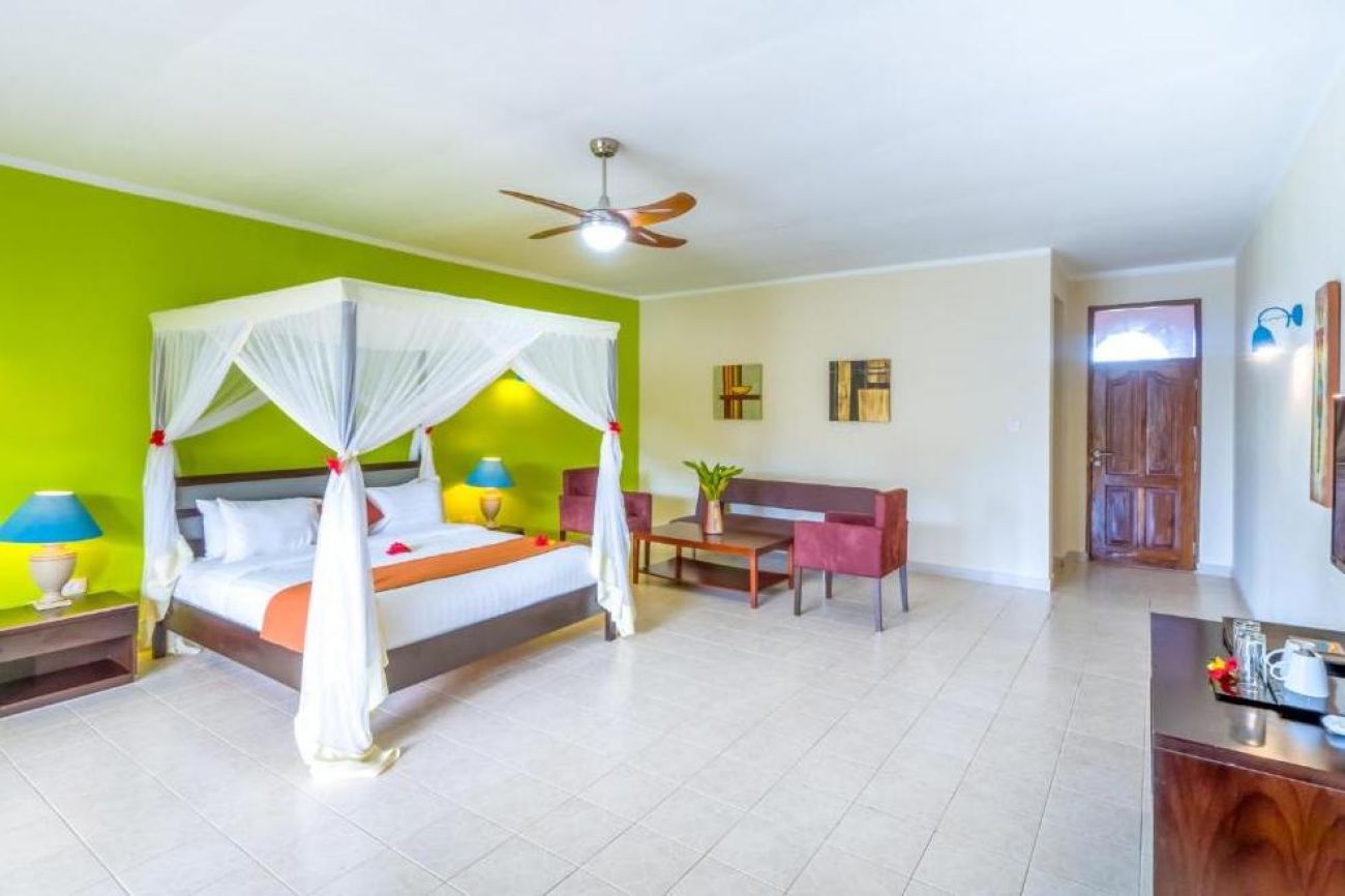 Хотелът посреща гостите си в стаи: Deluxe Ocean Room (40 кв.м), Deluxe Ocean Suite, Superior Garden Room, Standard Garden Room (70 кв.м), Superior Pool View Room (50 кв.м), Villas. Стаите разполагат с красиви високи тавани от дърво, мраморен под и френски прозорци с гледка градина или море. Всички стаи са оборудвани с климатик, телевизор с плосък екран, телефон, баня с душ, сешоар, минибар (платен), сейф, бюро, сет за кафе и чай, балкон или тераса, Wi-Fi (платен).