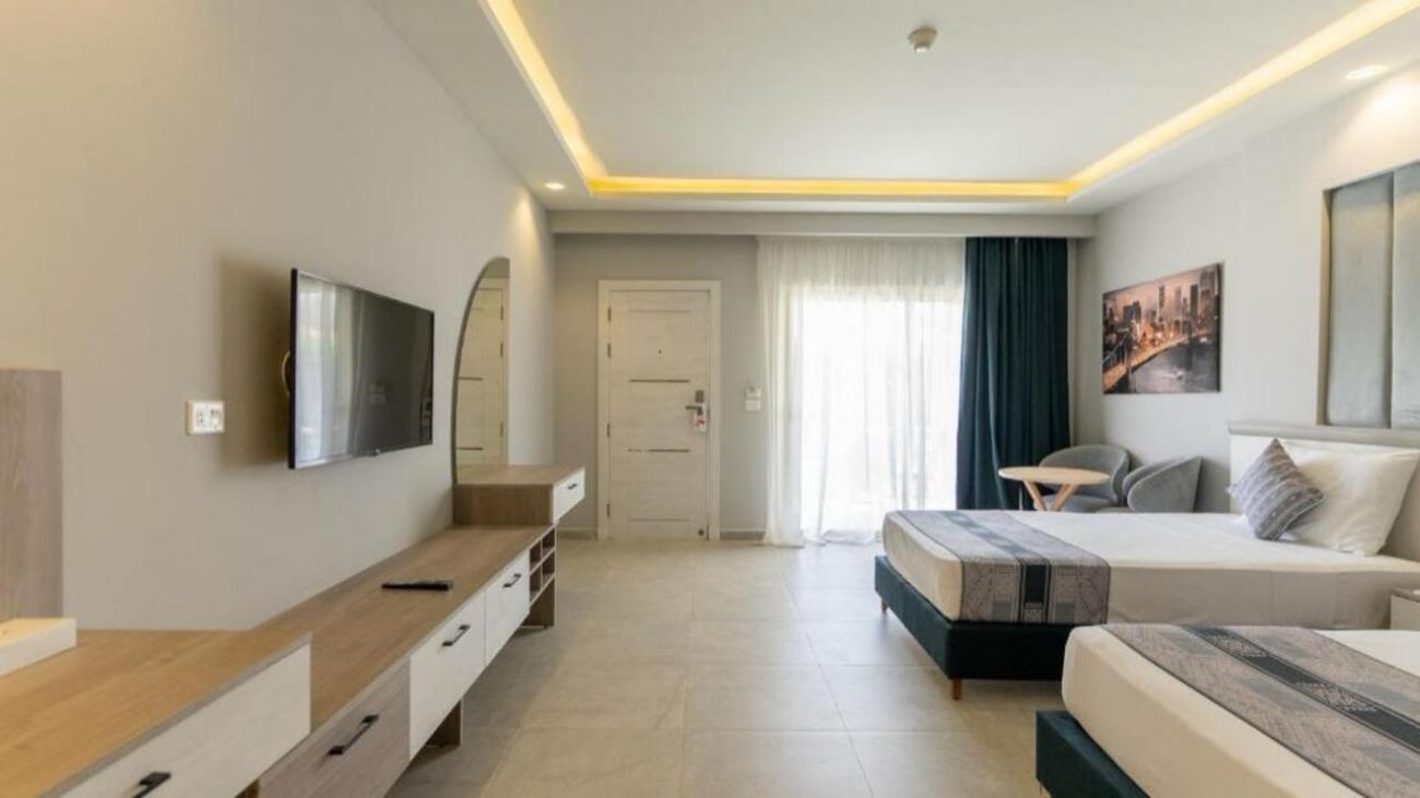 Хотелът разполага с общо 439 стаи, разположени в основна 2-етажна сграда (само рецепция), две 2-етажни корпуса и комплекс от 1-етажни бунгала. Standard room (34-38 м2 вкл. баня и тераса); Superior Garden view room (35 м2 ), Superior Pool view room (35 м2), Family Suite (Garden view, 45 м2 вкл. 2 спални с врата), Family connected (Garden view, 65 м2 вкл. 2 спални с врата ). Всички стаи са оборудвани с климатик, телевизор, телефон, баня с душ/вана, сешоар (по заявка на рецепция), минибар, сейф (безплатно на рецепция), балкон. Почистване на стаите и смяна на кърпи - всеки ден, смяна на спално бельо - 3 пъти седмично.