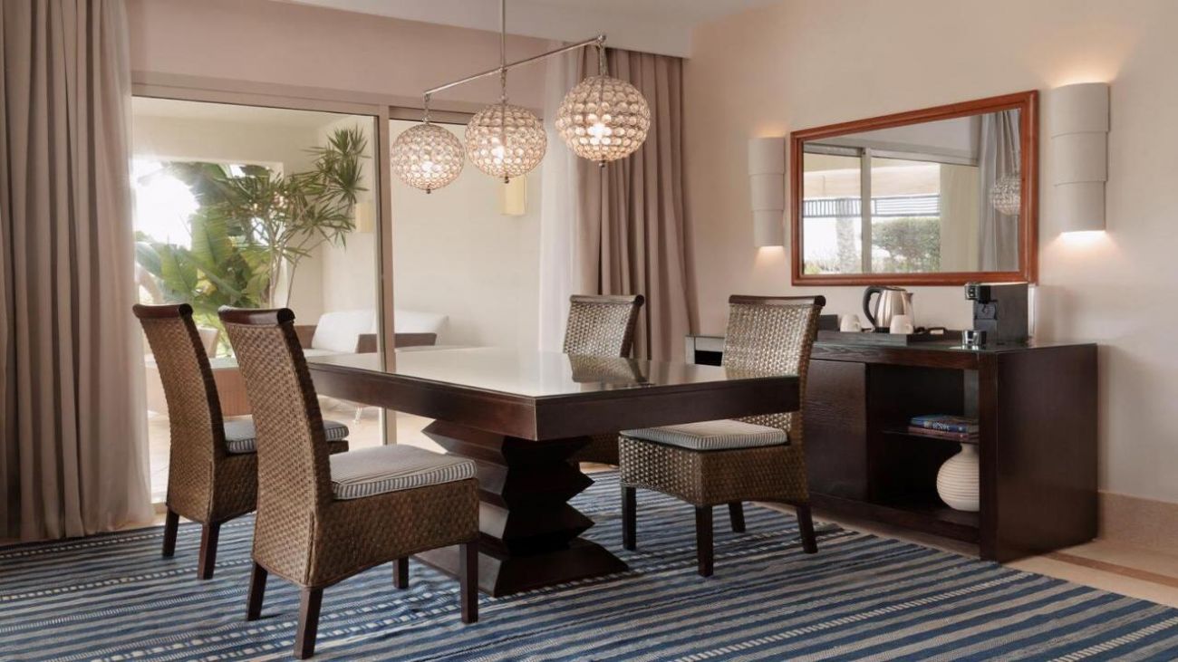 Хотелът разполага с 263 стаи, включително 78 свързани стаи и 174 семейни стаи, които осигуряват удобство за различни предпочитания. Стаите са просторни и елегантно обзаведени, с площ от 40 м² за стандартните стаи и 50 м² за семейните стаи. Всяка стая е оборудвана с климатик, минибар, телевизор с плосък екран, сейф, телефон, апарат за кафе/чай и балкон или тераса с изглед към морето или градините.