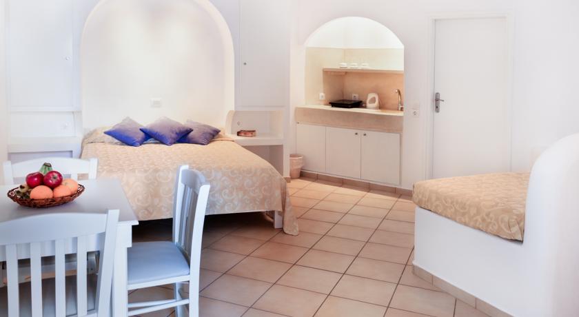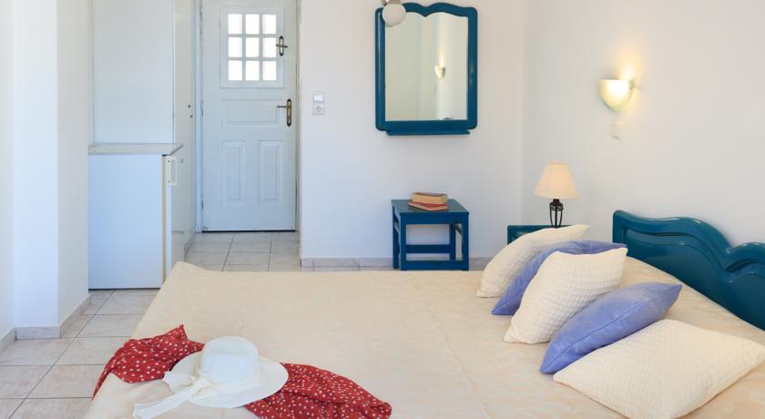 Местоположение: разположен е на 30 метра от плажа и на краткo пешеходно разстояние от оживения център на Периса. На 13 километра от Периса се намира град Фира, столицата на Санторини. На 200 метра от хотела има автобусна спирка.