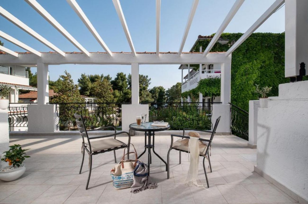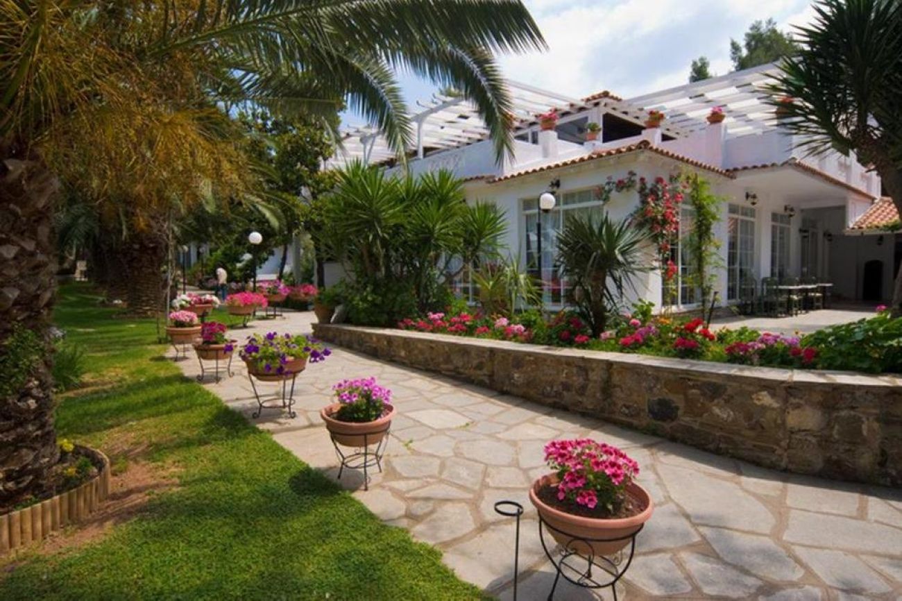 Хотелът се намира на брега на морето, сред добре поддържана зелена територия, където можете да се отпуснете с чаша леденостудена мента със спрайт. Центърът на селцето Никити е на 3 км, Метаморфоси е на 2,5 км.