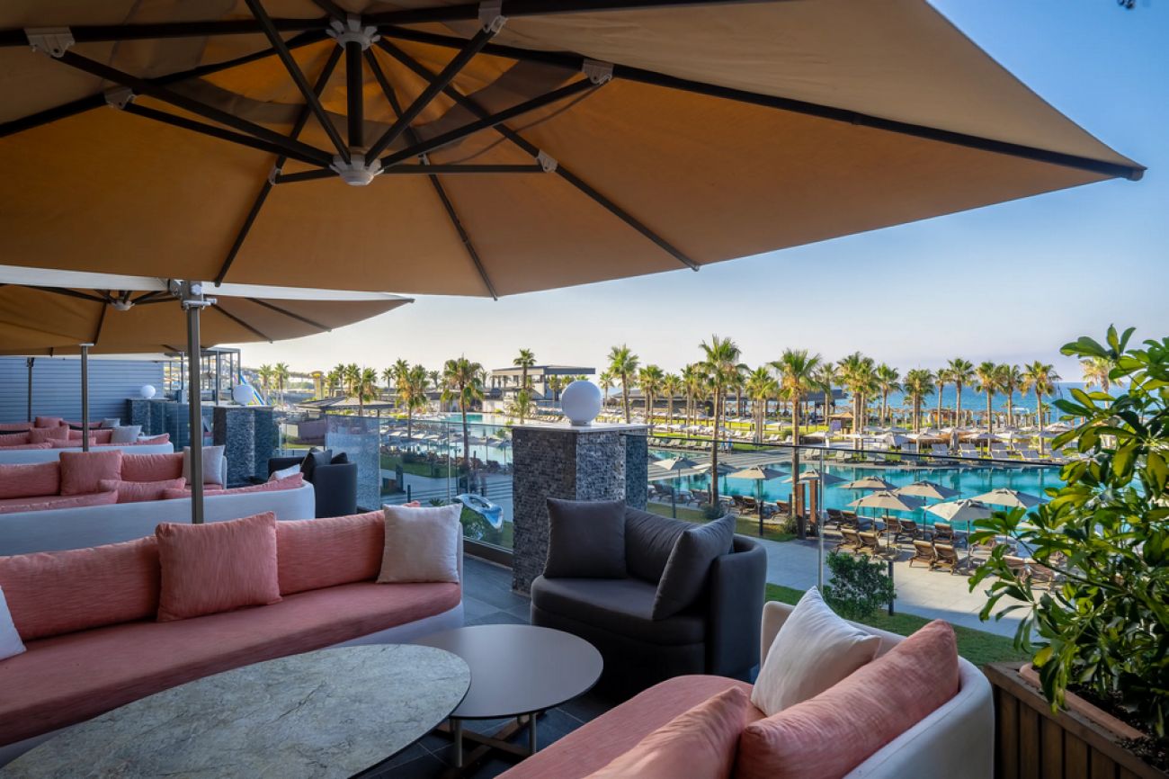 Собствен пясъчно-чакълест плаж, дълъг 350 м, с кей и плажни барове. За удобство на гостите предлага също основен басейн с площ 2000 кв.м, релакс басейн с площ 900 кв.м, Maldiva Pool само за възрастни (16+) с площ 820 кв.м, Infinity Pool с площ 280 кв.м, Indoor Pools, Aquapark Pool, Mega Aquapark Pool, Maldiva Kids Pool и Kids’ Aquapark Pool с 5 пързалки. Чадъри, шезлонги, матраци и плажни кърпи на плажа и при басейните се предоставят безплатно.