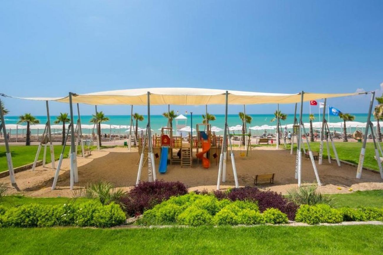 Собствен пясъчeн плаж, дълъг 350 м, наградн със сертификат за „Син флаг“. 2 открити басейна и 1 закрт басейн, аквапарк с 20 пързалки. Чадъри, шезлонги, матраци и плажни кърпи на плажа и при басейна се ползват безплатно.