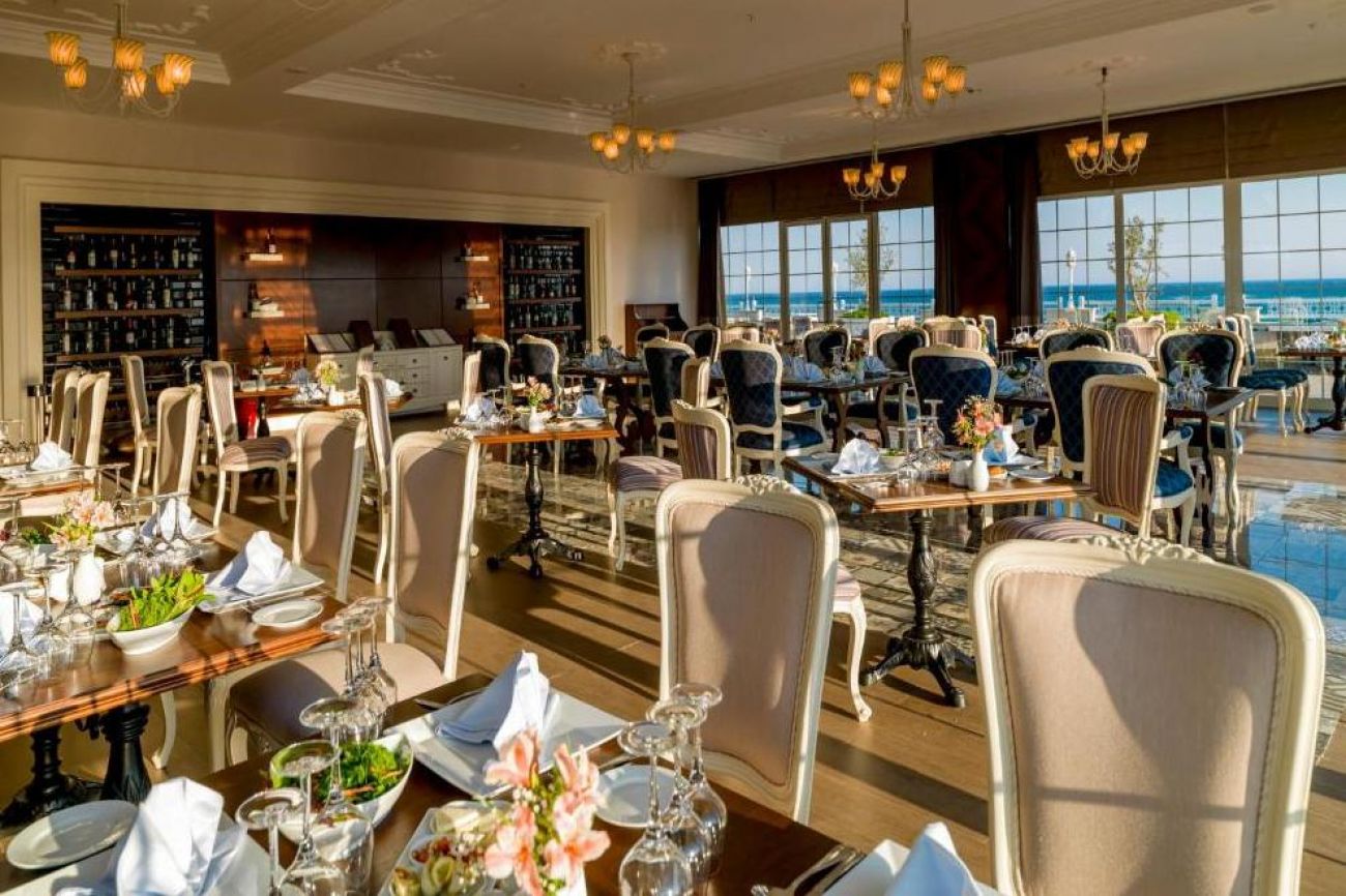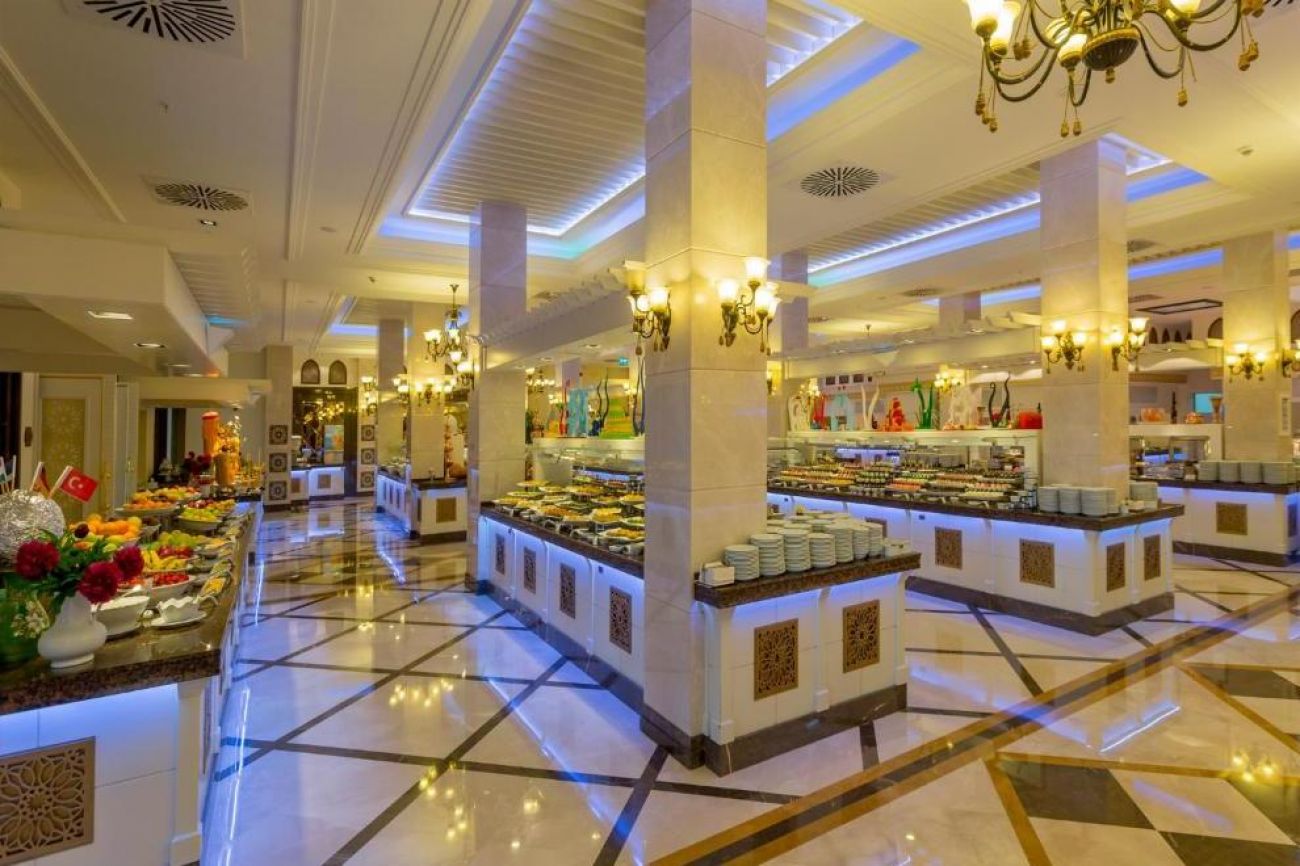 На разположение на гостите са основен ресторант, 3 а`ла карт ресторанта: турски, интернационален, рибен (срещу заплащане, с предварителна резервация), снек ресторант, Aqua ресторант, ресторант на плажа, гьозлеме, сладкарница, кафетерия, открит диско бар. Разнообразни напитки се предлагат в 10 бара.
