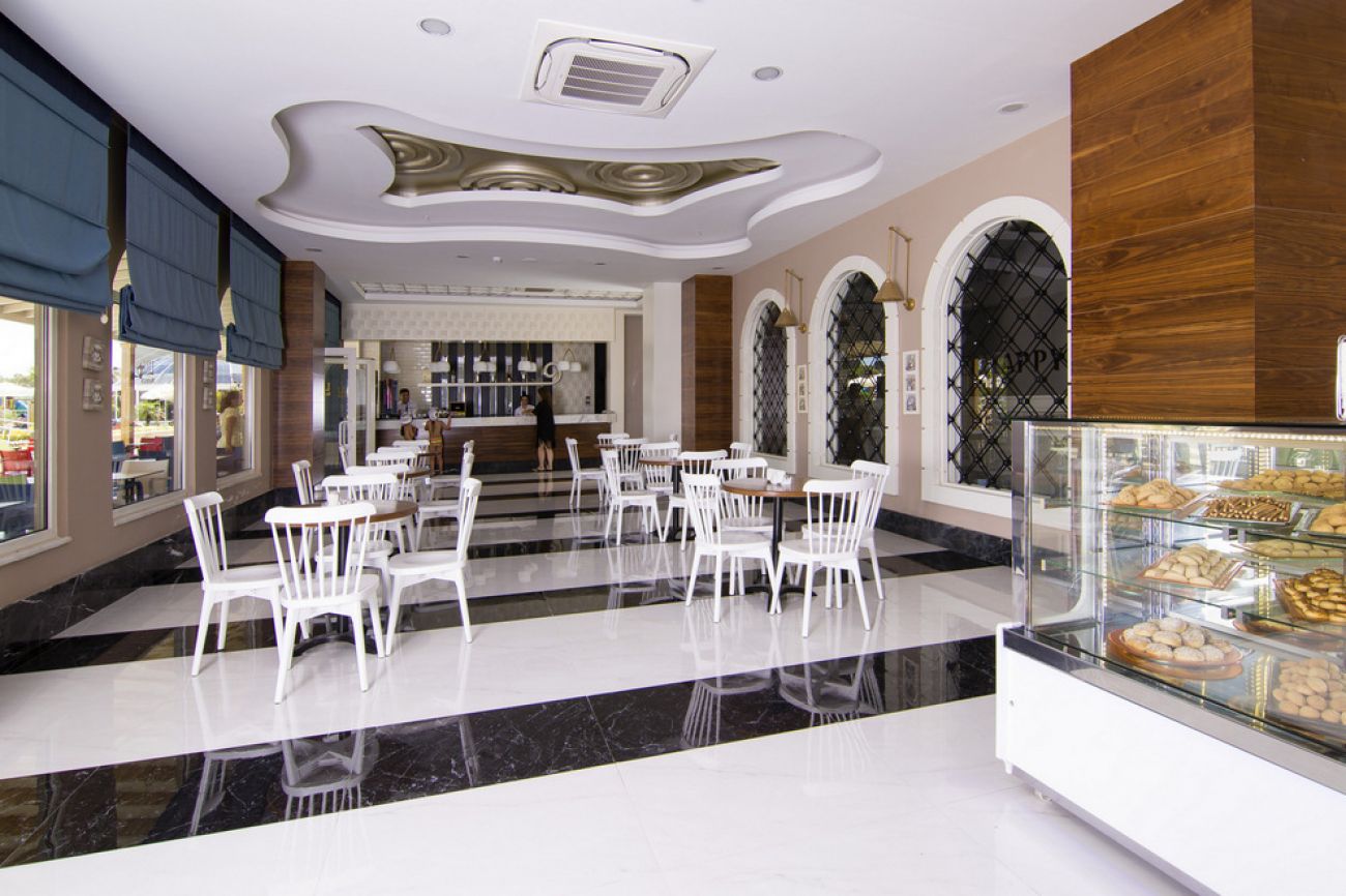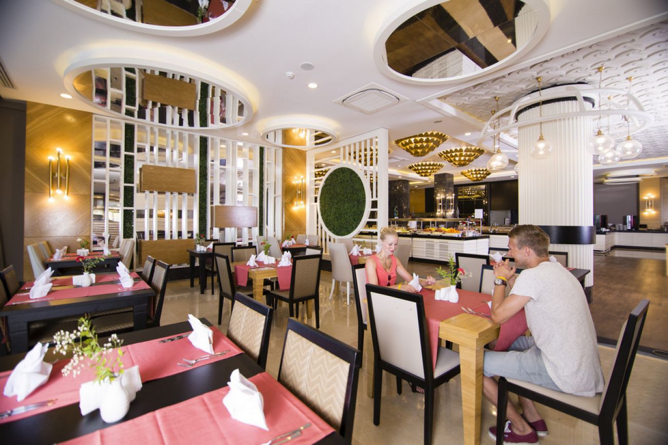 На разположение на гостите има основен ресторант Port и три а`ла карт ресторанта: Южно-анталийска кухня, Чррноморска кухня и On the beach. Освежаващи напитки и закуски се поднасят в лоби бар, бар при басейна, бар на плажа и диско бар.