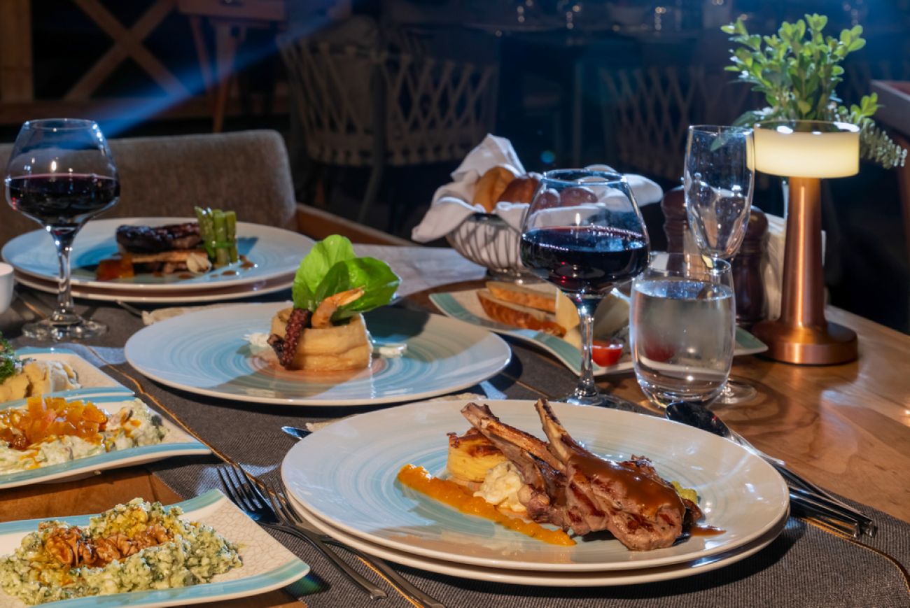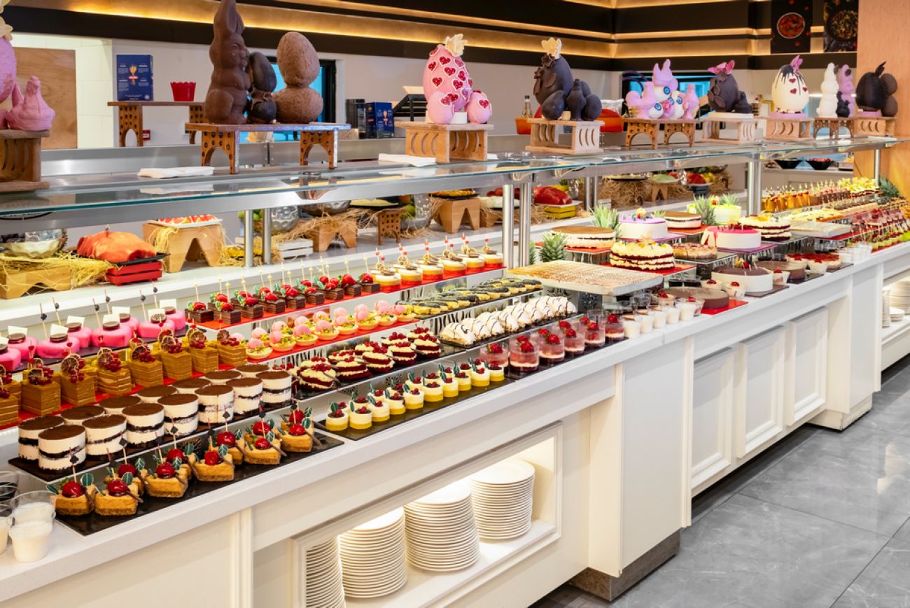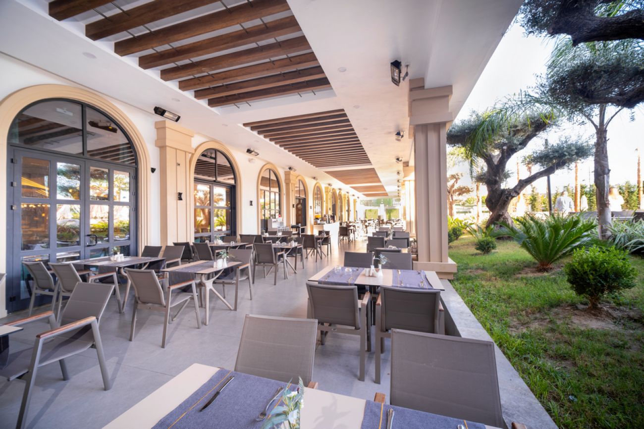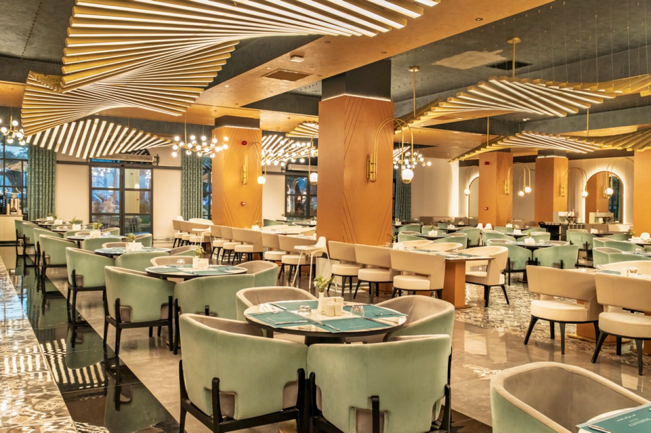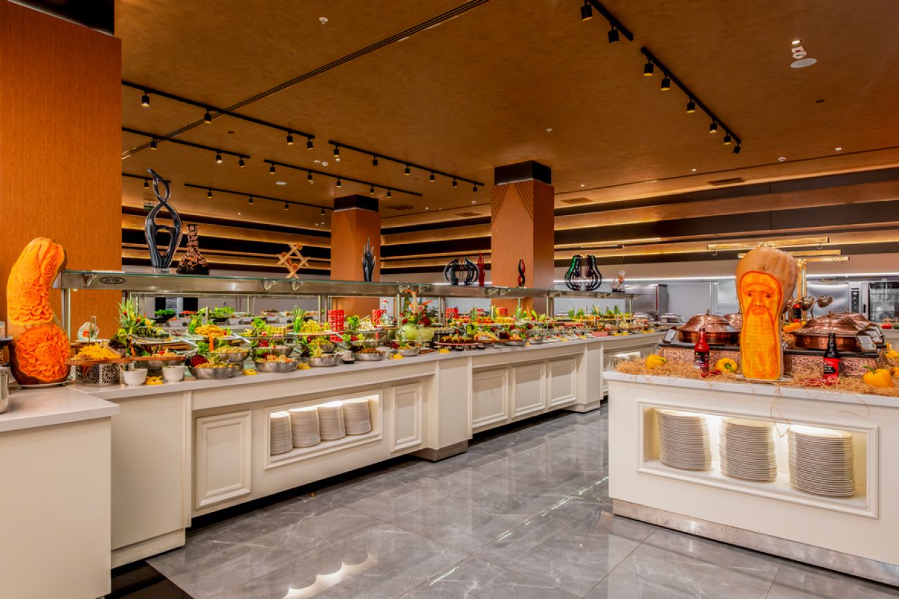 На разположение на гостите има основен ресторант Majesty Main Restaurant и 2 а`ла карт ресторанта: Seagate Fish A La Carte Restaurant и Royal Meat A La Carte Restaurant. Освежаващи напитки и закуски се сервират в Queen Bar, Cosmopolitan Pub Bar, City Lounge Bar, бар при басейна, бар на плажа,Anex Bar и Street Food Bar (на плажа).