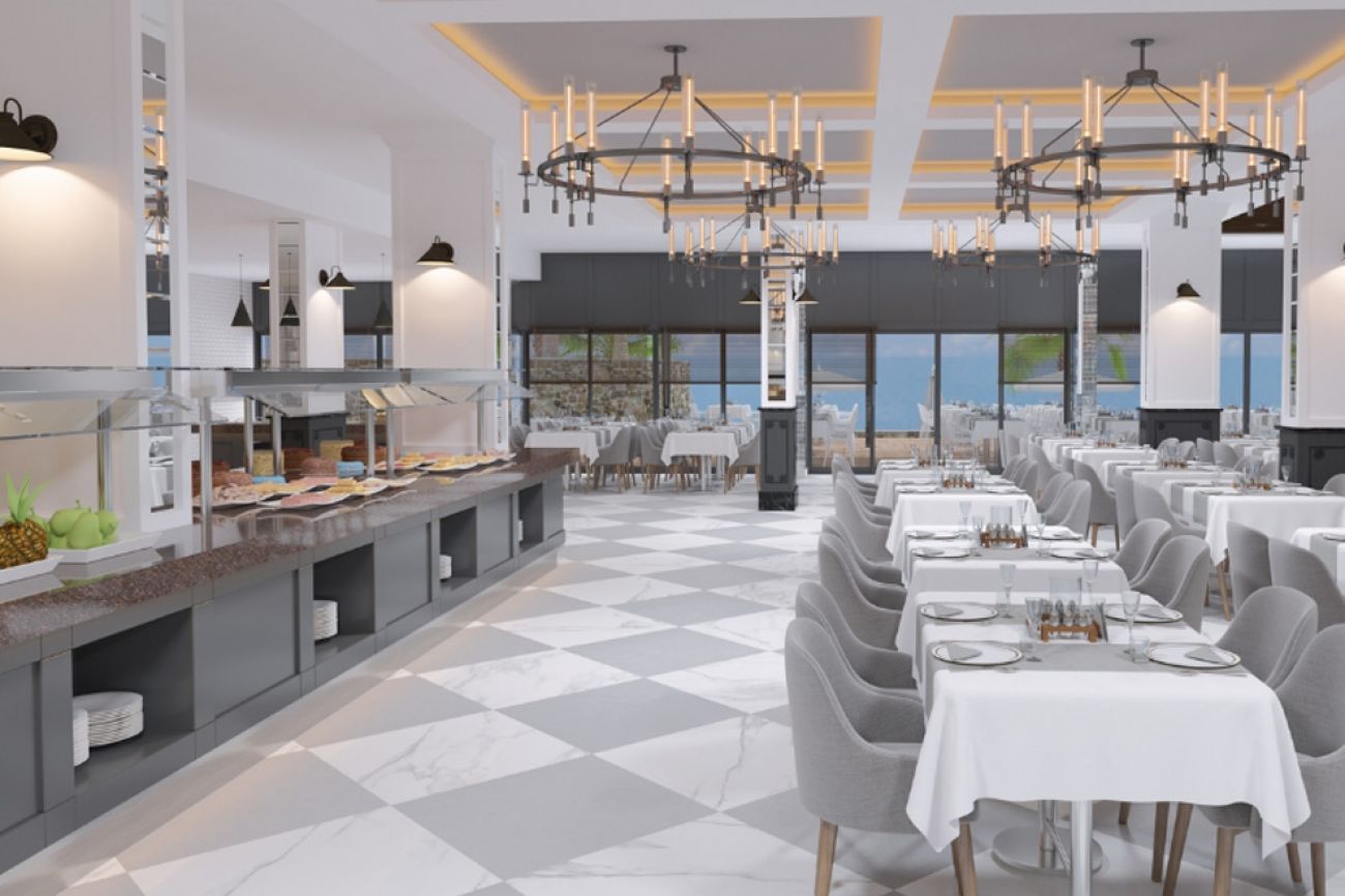Хотелът разполага с 1 основен ресторант и 3 бара. Има а`ла карт ресторант, рибен, с предварително записване, 1 безплатно посещение при престой от минимум 5 дена. База на изхранване AL.