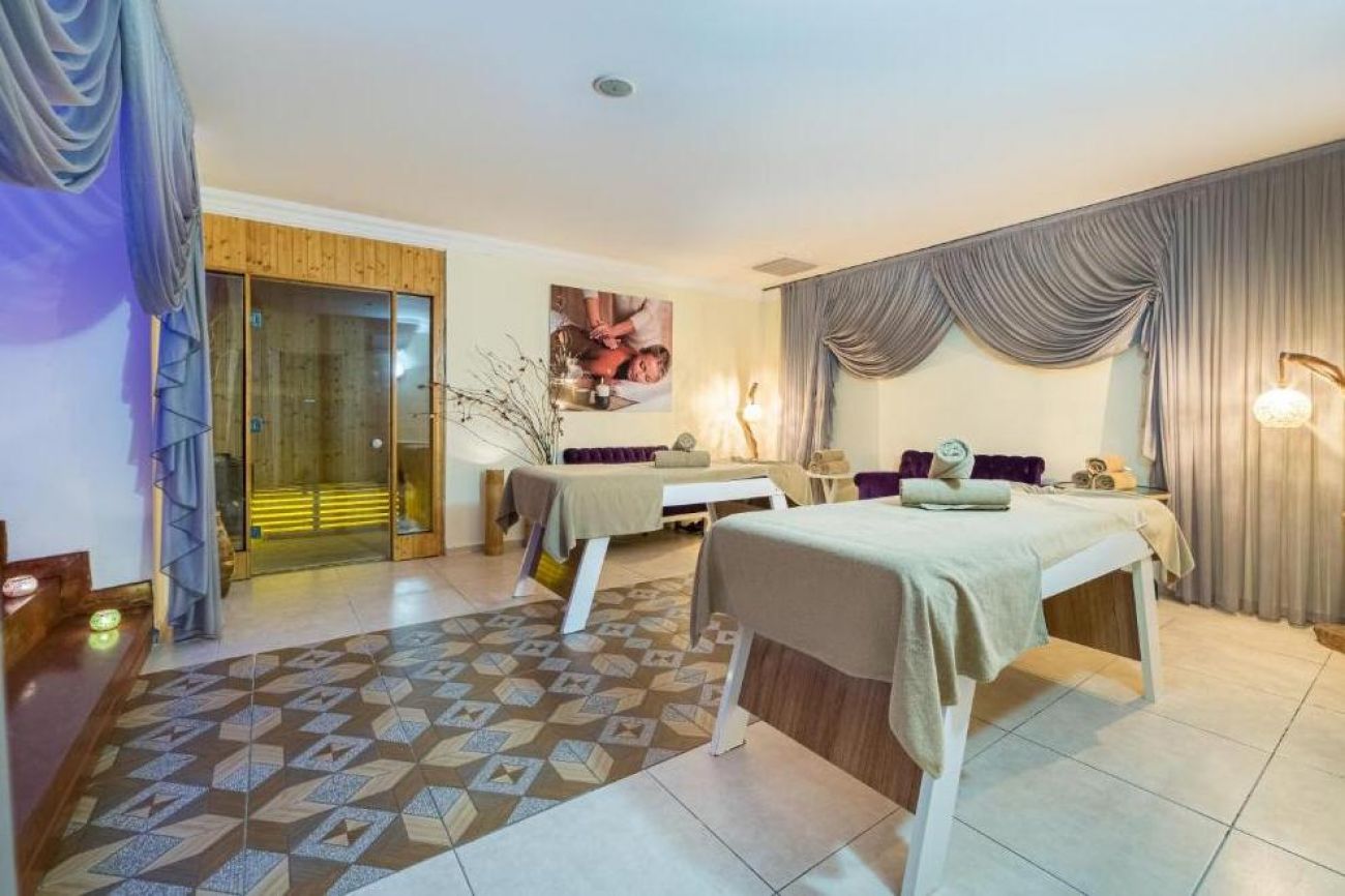 Безплатно: хамам, сауна, фитнес център, водна гимнастика, волейбол, степ аеробика, водна топка, гмуркане, плажен волейбол, тенис на маса, Wi-Fi интернет на лоби.