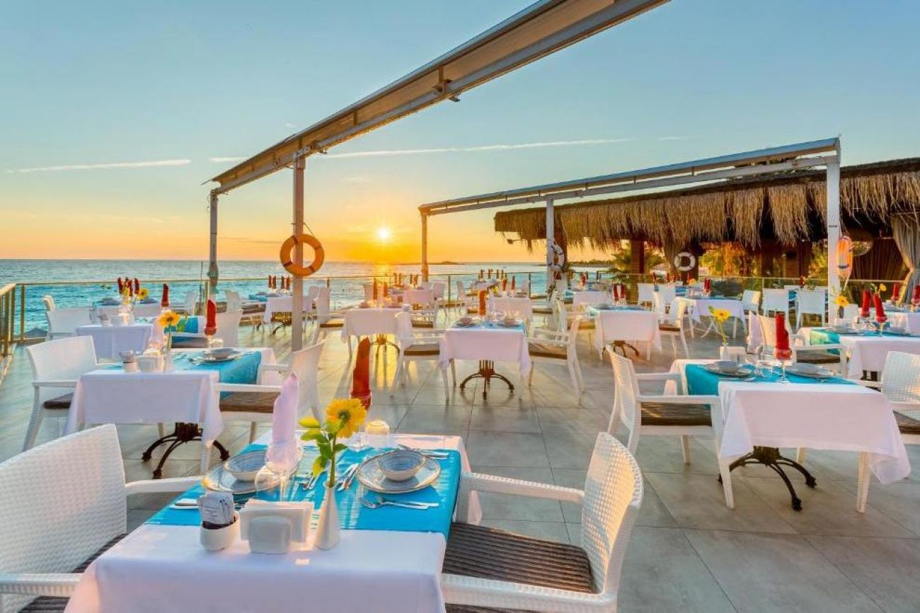 На разположение на гостите са основен ресторант и два а`ла карт ресторанта: рибен и турски. Освежаващи напитки и закуски се поднасят в лоби бар, бар на плажа, диско бар и бар при басейна.