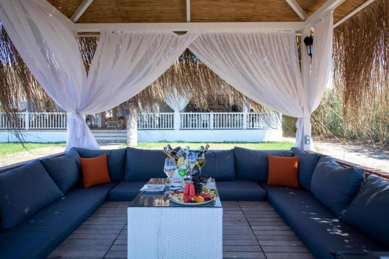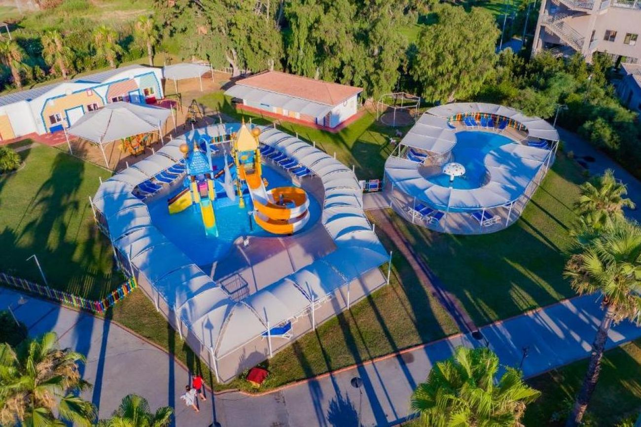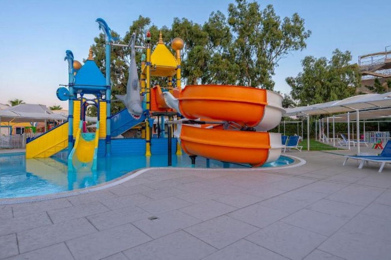 Собствен пясъчно-чакълест плаж и 4 открити басейна с 5 водни пързалки за възрастни и 3 пързалки за деца.