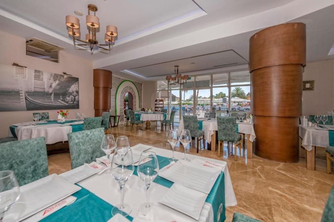 На разположение на гостите има основен ресторант и 4 а`ла карт ресторанта: турски ресторант, ресторант с далекоизточна кухня, италиански ресторант, рибен ресторант. Освежаващи напитки и закуски се поднасят в 6 бара: лоби бар, бар при басейна, бар на плажа, Siestra Bar, Sunset Bar, Jaff Bar.