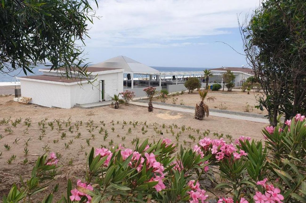 Собствен пясъчно-чакълест плаж на около 200 м от хотела, има кей. На разположение на гостите са открит басейн и аквапарк с 6 пързалки.