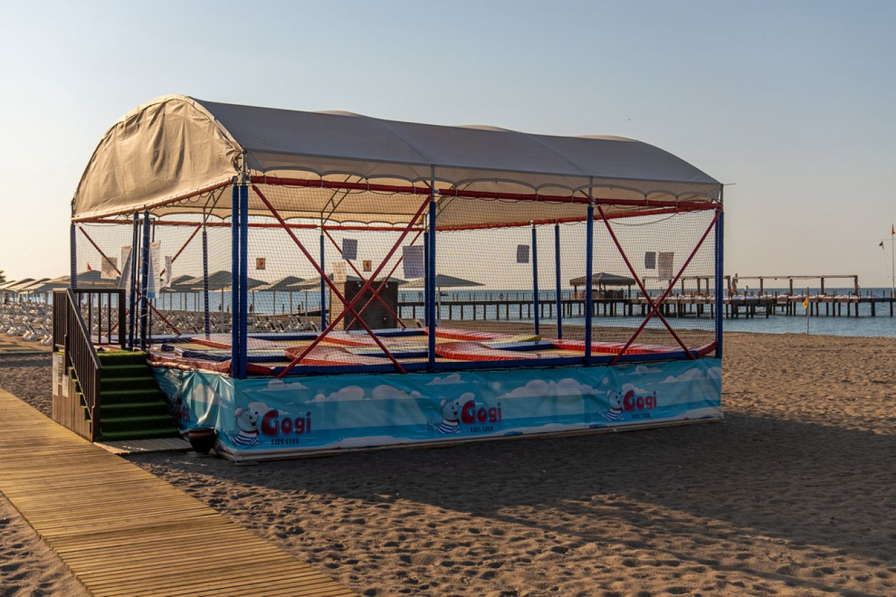 Хотелът има собствен пясъчен плаж. Има също 2 открити басейна (един от тях полуолимпийски), закрит басейн, 6 водни пързалки. Чадъри, шезлонги, матраци - безплатно.