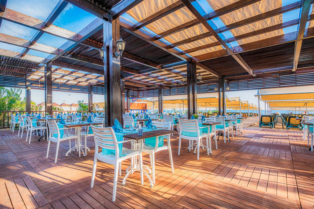 Собственият пясъчен плаж се намира на 400 м от хотела. На разположение на гостите има 4 открити един закрит басейн. 4 водни пързалки.
