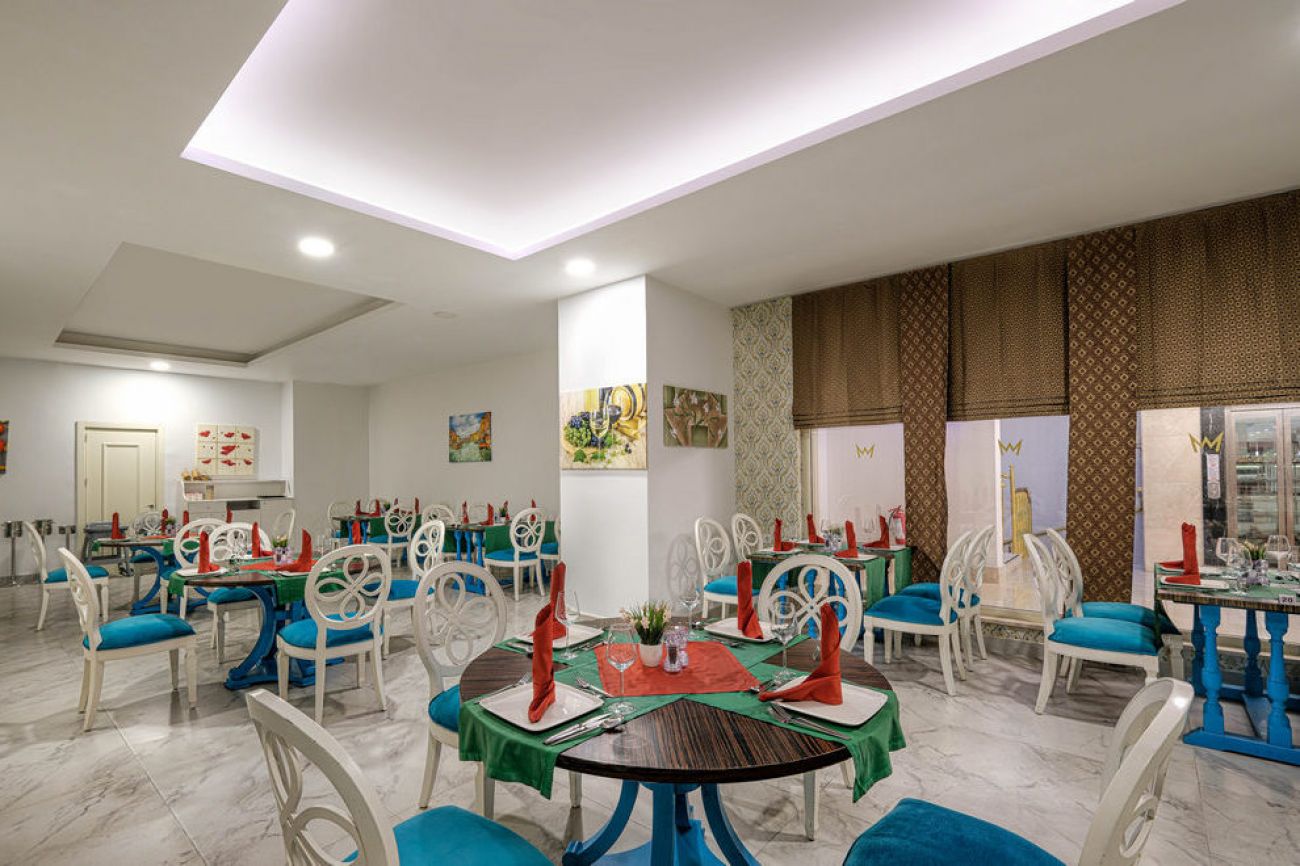 На разположение на гостите са основен ресторант и три а`ла карт ресторанта: рибен, турски и италиански. Освежаващи напитки и закуски се поднасят в 4 бара.