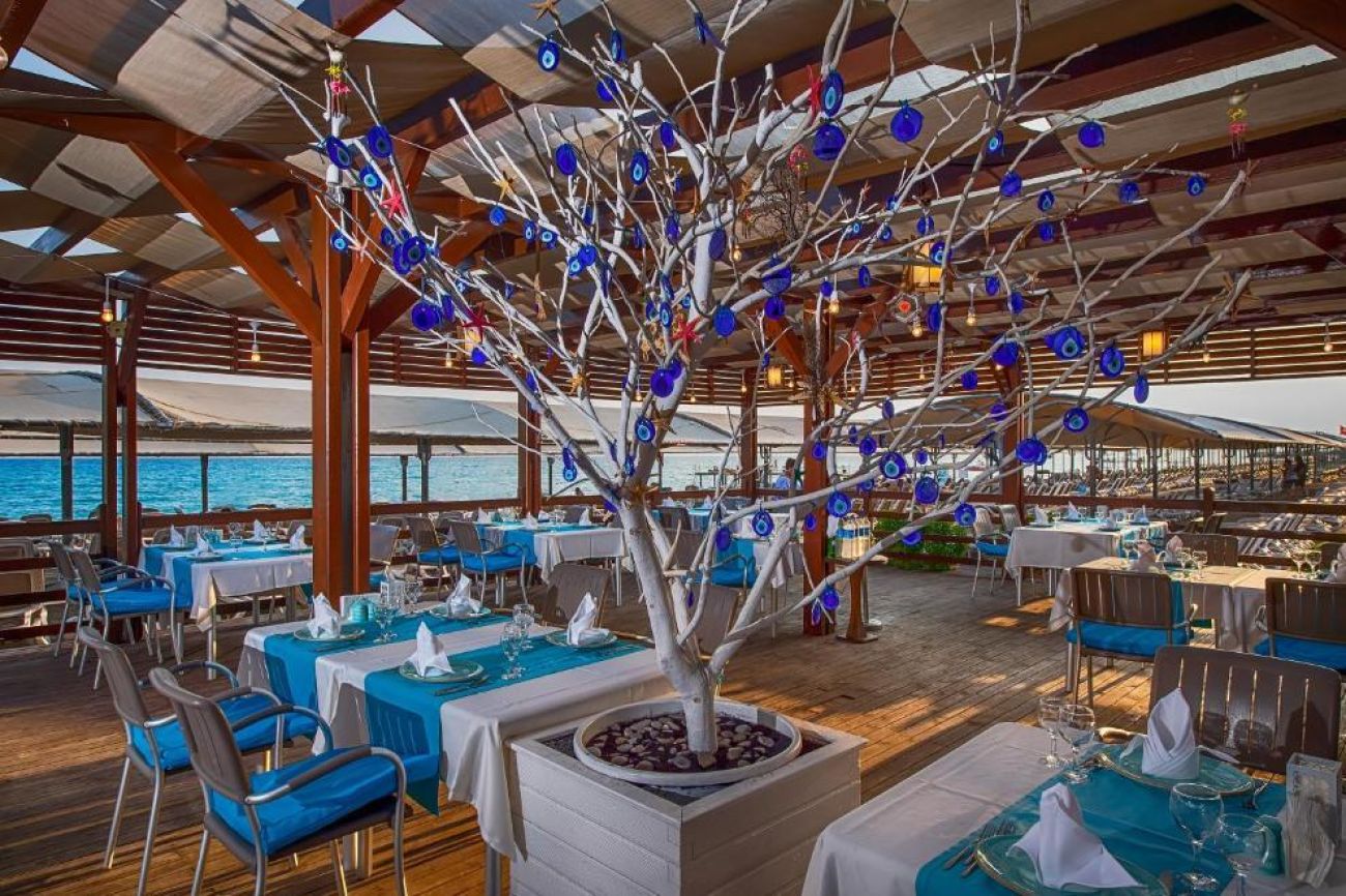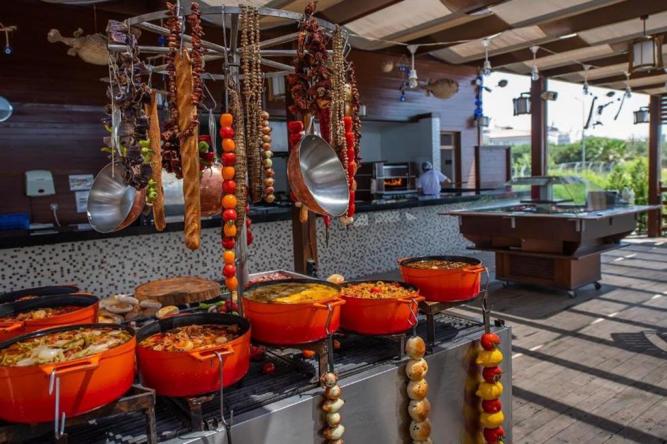 На разположение на гостите са основен ресторант и 4 а`ла карт ресторанта: италиански, рибен, турски, мексикански. Разнообразни напитки и закуски се поднасят в Signature Bar, Clark Gable bar, Sunset Bar, Food Court, бар на плажа, бар Infinity Pool (при басейна), Arena Bar, Amfi Bar, Mojo Disco Bar.