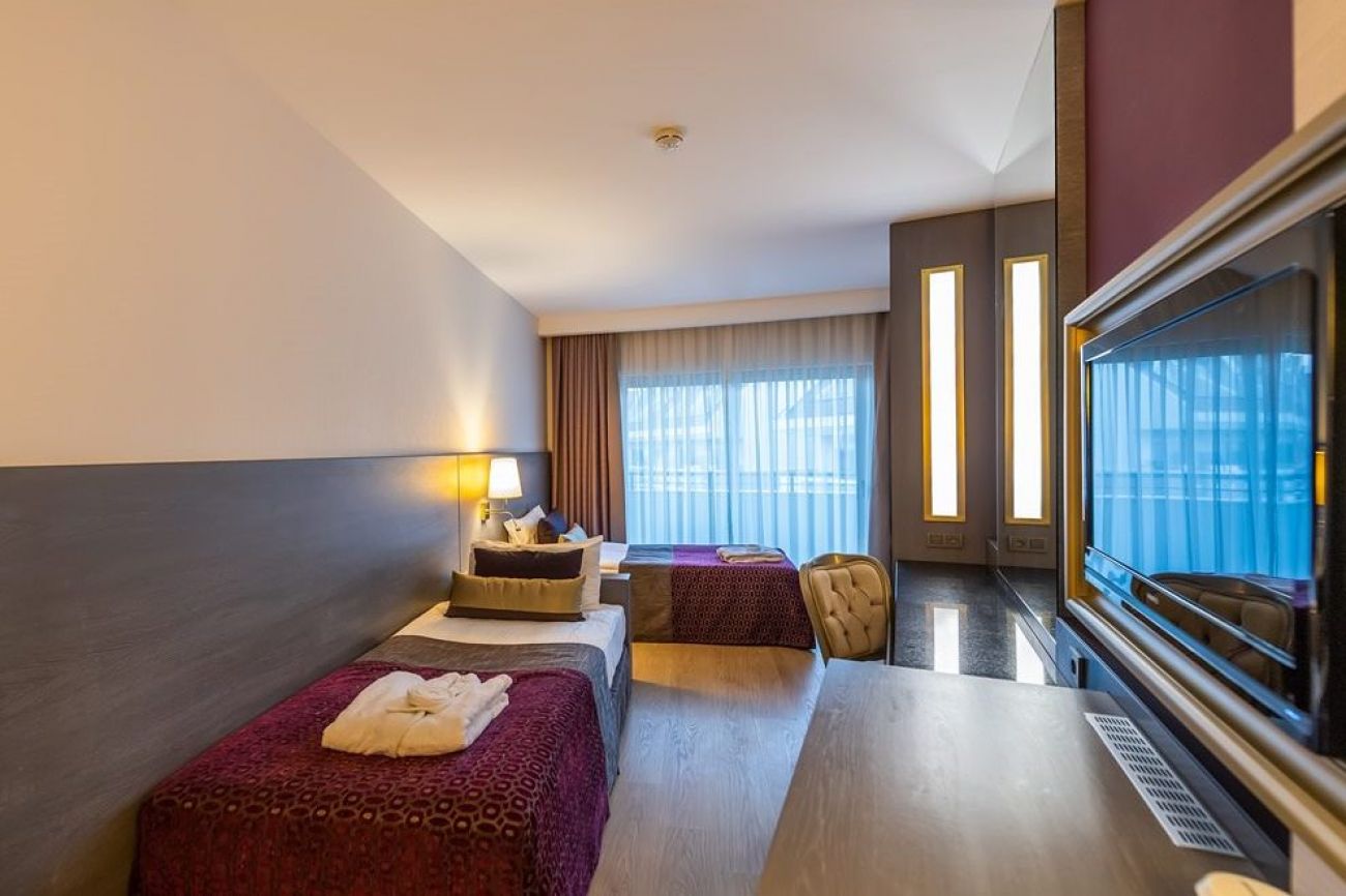 Standard Side Sea View Room има Едно двойно и едно единично легло, балкон, душ, WC, сешоар, телефон в стаята и банята, халат, чехли, меню за възглавници, цифрова сателитна и LCD телевизия, бебешко креватче (при поискване), ламиниран паркет, безплатен сейф, минибар (ежедневно зареждан с бира, вода и безалкохолни напитки; чипс и шоколад в деня на пристигане), електрическа кана (комплект за чай и кафе), централен климатик, безплатен безжичен интернет (Wi-Fi), безплатно ежедневно почистване, комплект за зъби, комплект за бръснене, гребен, пила за нокти, ръкавица за баня, памучни тампони, душ гел, лосион за тяло, шапка за душ, сапун, шампоан, клечки за уши, кутия за салфетки, ножица за обувки и комплект за шиене. Площ 29 кв.м, максимално настаняване: 2+1 или 3 души.
