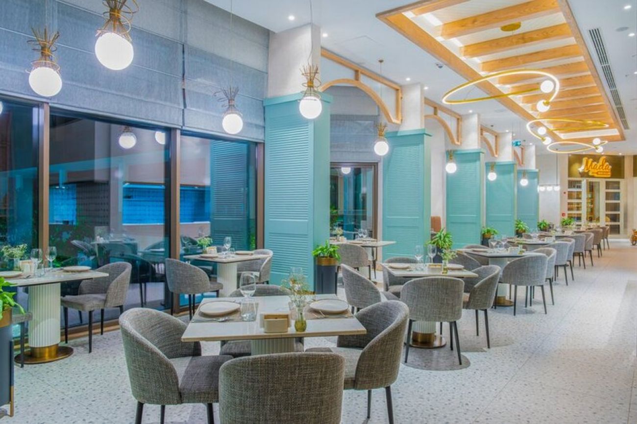 На разположение на гостите са 1 основен ресторант, в който закуска, късна закуска, обяд, вечеря и вечеря се сервират на открит бюфет. 3 а`ла карт ресторанта: рибен, италиански, азиатски. Освежаващи напитки и закуски се поднасят в 5 бара: лоби бар, снек бар, бар при басейна, Спорт бар и Roof Bar. Има и сладкарница.