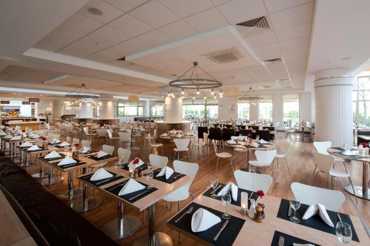 Хотелът разполага с основен ресторант, тераса-грил ресторант и ресторант на плажа. В 2-та бара се предлагат освежаващи напитки. All Inclusive – закуска, обяд и вечеря на блок маса, междинни хранения, местни алкохолни и безалкохолни напитки – без лимит.