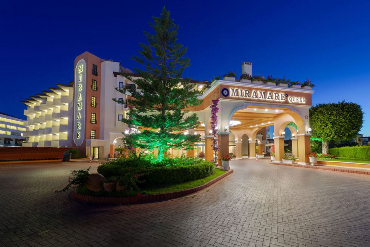 Хотелът се намира на 6 км от Сиде и на 60 км от летището, на 200 м от морето. Плажът, плажният бар, водните пързалки, тенис кортовете и дискотеката се споделят от два хотела (Miramare Beach и Miramare Queen). последна реновация е направена през 2019 г.