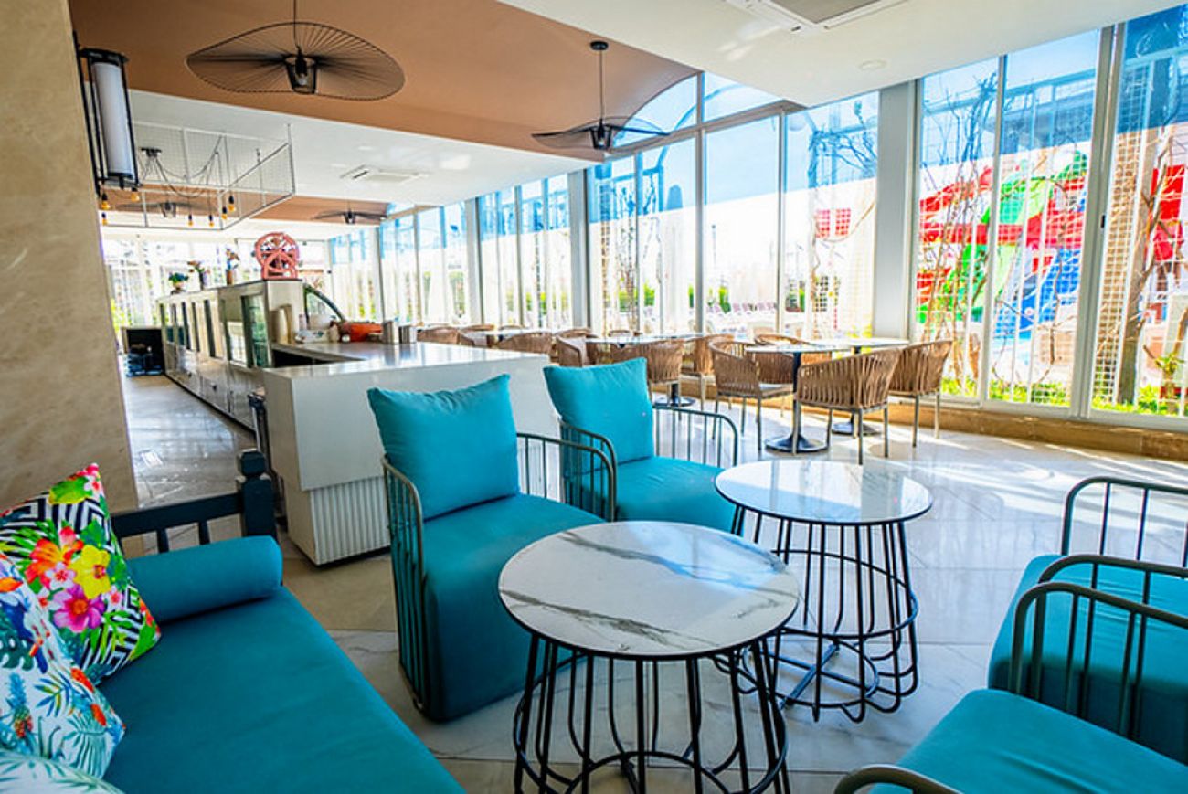 Собствен пясъчно-чакълест плаж, 2 открити басейна, 1 закрит, 3 водни пързалки. Чадъри, шезлонги и плажни кърпи на плажа и при басейна се ползват безплатно.
