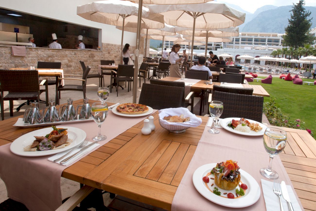 На разположение на гостите са основен ресторант, 5 а`ла карт ресторанта: японски, китайски, турски, италиански, рибен, 4 снек бара, детски ресторант и сладкарница. Освежаващи напитки и закуски се поднасят в 12 бара има и нощен клуб.