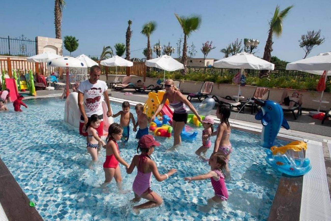 Хотелът се намира на първа линия и разполага със собствен пясъчен плаж. За удобството на своите гости предлага също открит басейн, закрит басейн, 3 водни пързалки. Чадъри, шезлонги и матраци на плажа се предоставят безплатно, а плажни хавлии са срещу депозит.