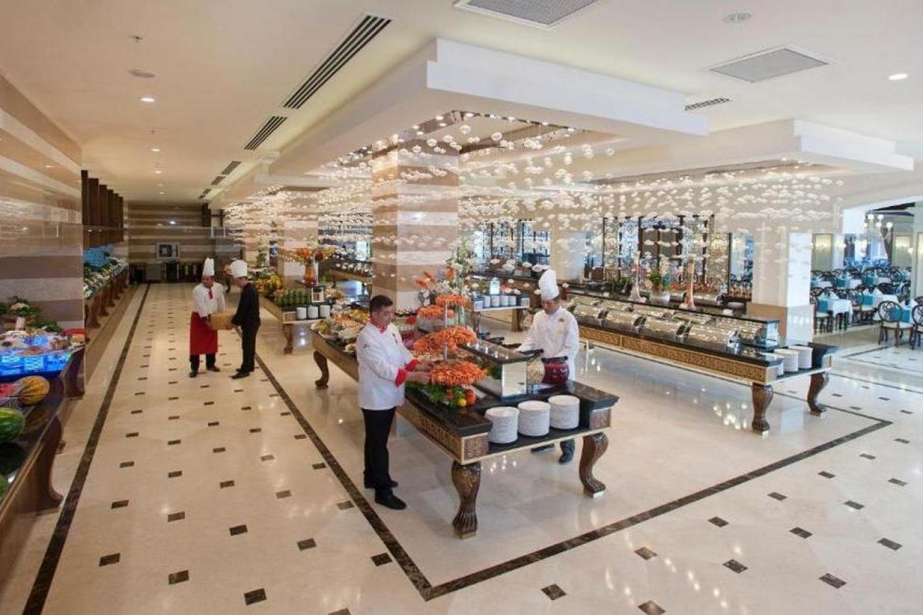 Хотелът разполага с основен ресторант, в който се предлага диетично и вегетарианско меню, 5 a`лa карт ресторанта (италиански, турски, рибен, мексикански, китайски), 6 бара.
