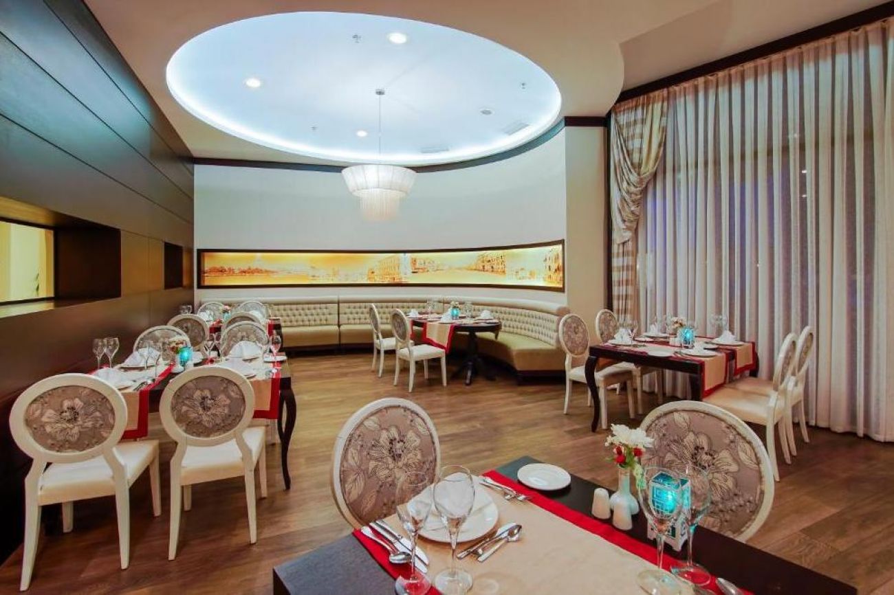 На разположение на гостите са основен ресторант (диетично меню) и 6 а`ла карт ресторанта: италиански, турски, азиатски, мексикански, индийски и рибен (срещу заплащане, с предварителна резервация, съгласно концепцията на хотела). Разнообразни напитки и закуски с предлагат в 6 бара и Снек бар. Допълнителни услуги като а`ла карт ресторант за романтична вечеря или наемане на павилион за малко уединеност на плажа.