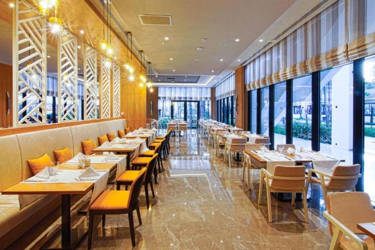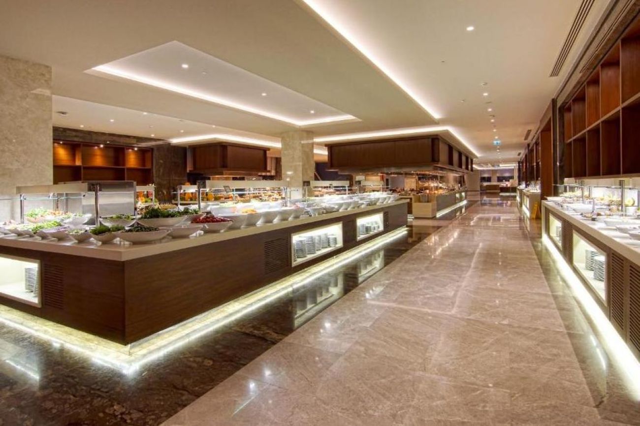 На разположение на гостите са основен ресторант и 6 а`ла карт ресторанта: Италиански ресторант, гръцки ресторант, ресторант в интеационална кухня, японски ресторант, ресторант с далекоизточна кухня, Steak House (работно време на а`ла карт ресторантите 19:00-22:00 ч., необходима е предварителна резервация). Освежаващи напитки и закуски се поднасят в 9 бара: Trendy лоби бар (денонощно), N-Joy спортен бар (17:00-00:00 ч.), Beach бар (10:00-18:00 ч.), Pool Бар (10:00-00:00 ч.), Vitamin бар (10:00-18:00 ч.), Villa бар (10:00-18:00 ч.), Eclair (Pastane) Bar (16:00-00:00 ч.), Snack бар (10:00-23:00 ч.) и Нощен клуб (23:00-02:00 ч.).