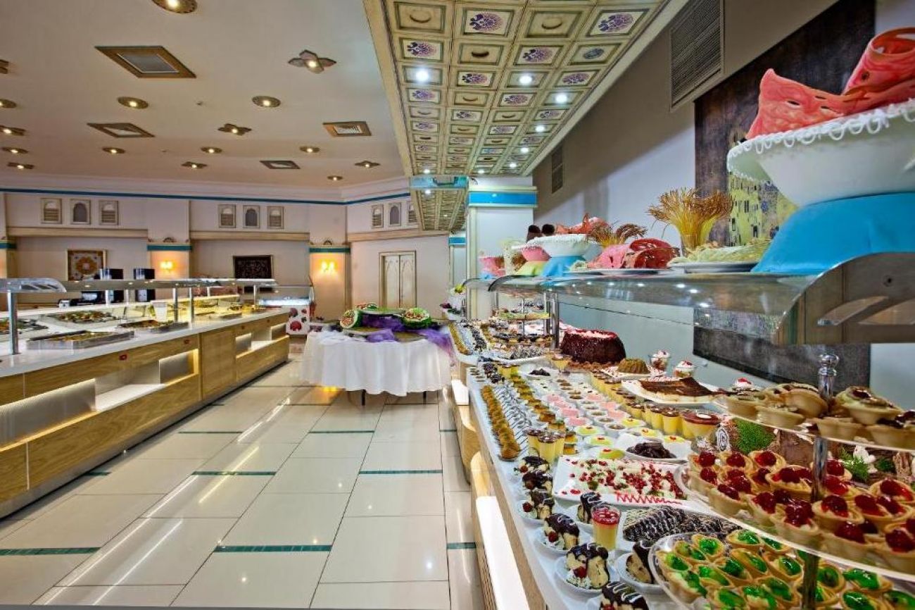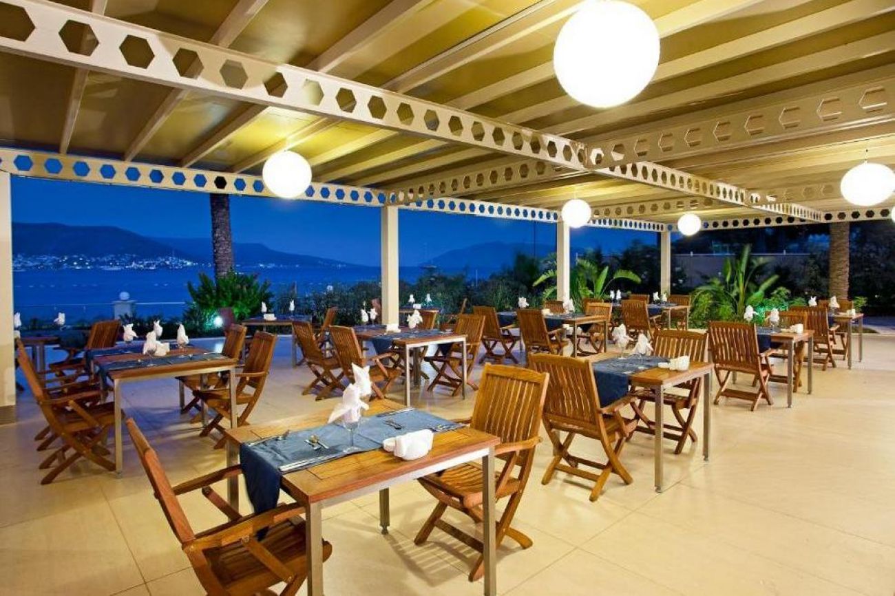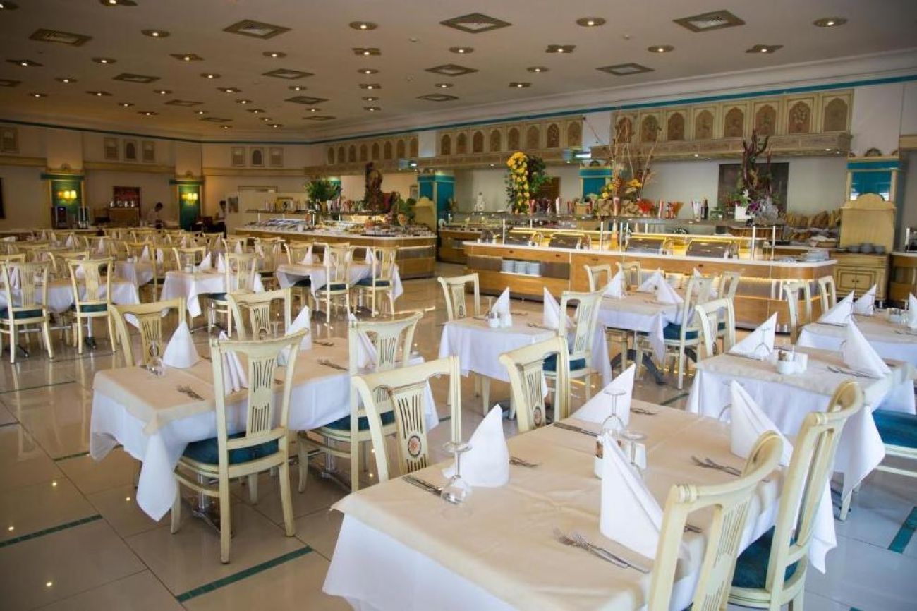 Хотелът има основен ресторант и 1 а`ла карт ресторант "Посейдон", в който се поднася морска храна (с предварителна резервация и при минимален престой от 7 нощувки, отворен от 15.05 до 15.10). В 4-те бара - при басейна, на плажа, в ресторанта и лоби, се поднасят освежаващи напитки. Ultra All Inclusive концепцията включва закуска, обяд, вечеря и междинни хранения на шведска маса; местни и някои вносни алкохолни и безалкохолни напитки местно производство - без лимит (съгласно концепцията на хотела).