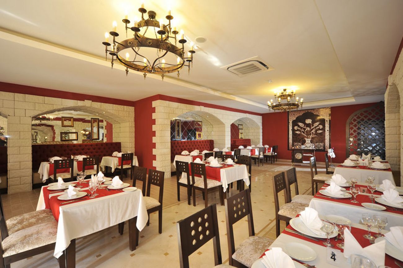 Хотелът има основен ресторант и 2 а`ла карт ресторанта - турски и италиански. В петте бара се поднасят разнообразни напитки.