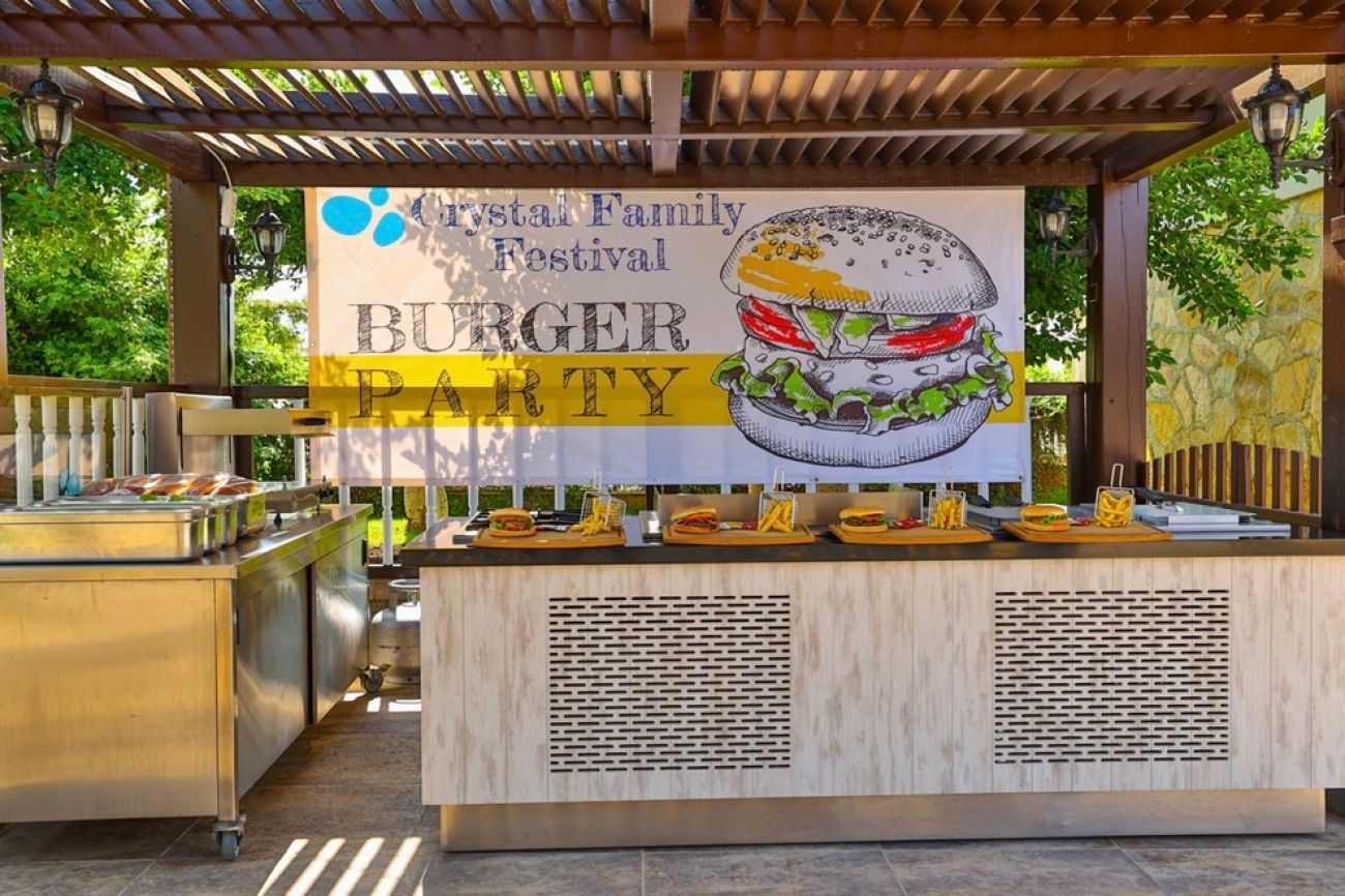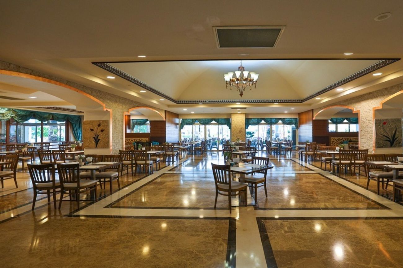 На разположение на гостите има основен ресторант и 4 а`ла карт ресторанта: турски, рибен, италиански и мексикански (с предварителна резервация, 1 безплатно посещение при 7-дневен престой). Освежаващи напитки и закуски се поднасят в 6 бара: лоби бар, бар при басейна, бар на плажа, Detox Bar, Wine and Beer House и снек бар, има и гьозлеме кът.