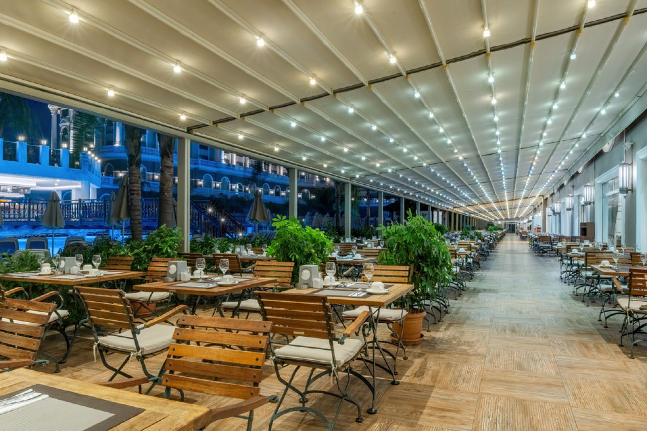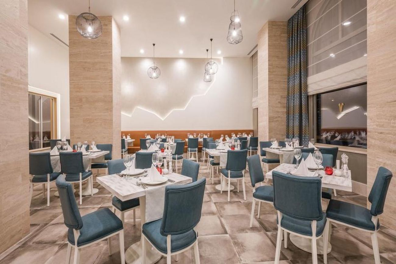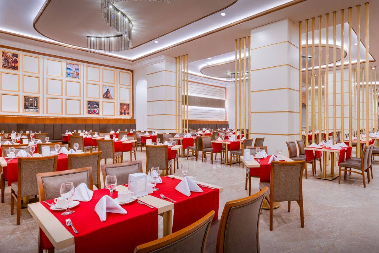 На разположение на гостите са основен ресторант La Gare и ресторант на плажа. 4 а`ла карт ресторанта: турски Sofra ресторант (срещу допълнително заплащане), азиатски Shuang ресторант (срещу допълнително заплащане), италиански Statione (срещу допълнително заплащане и предварителна резервация), средиземноморски White Hill (срещу допълнително заплащане и предварителна резервация). Разнообразни напитки се поднасят в 6 бара, има още снек-бар, сладкарница, която работи денонощно и нощен клуб.