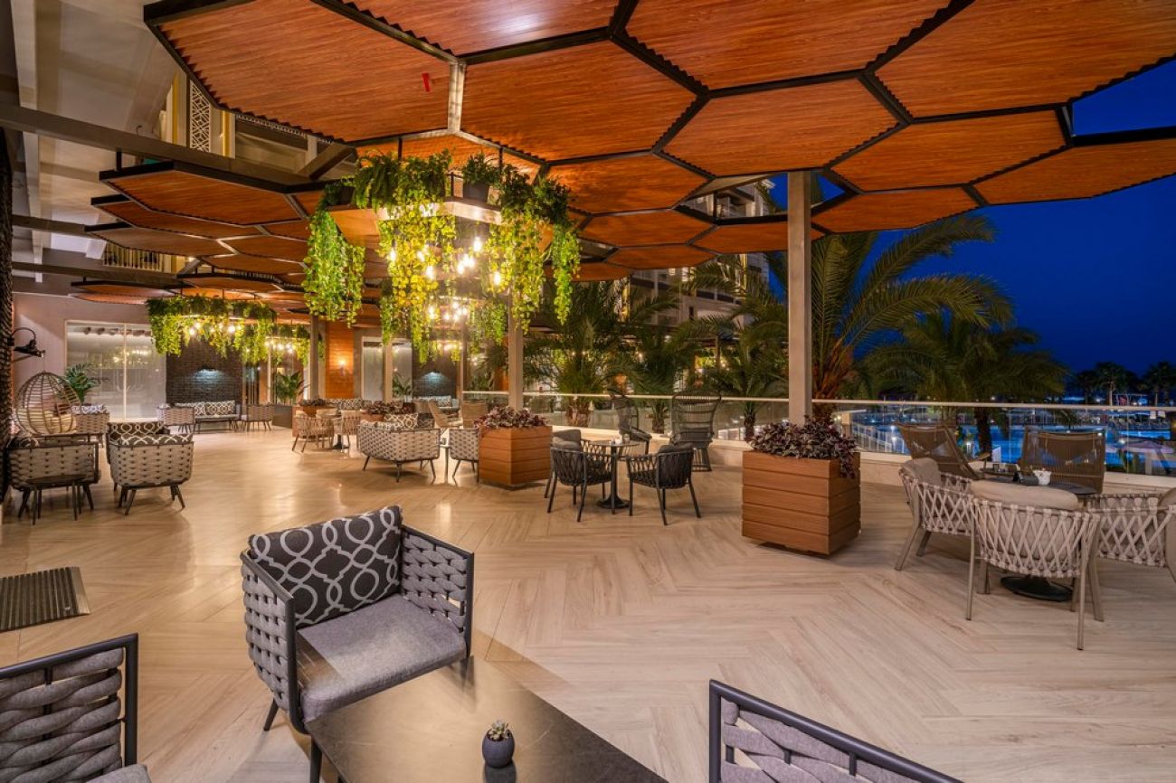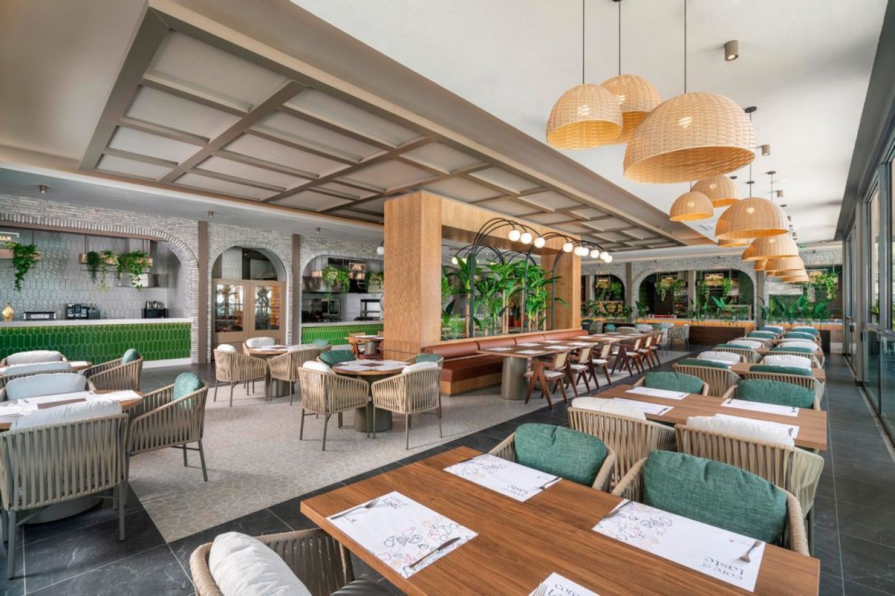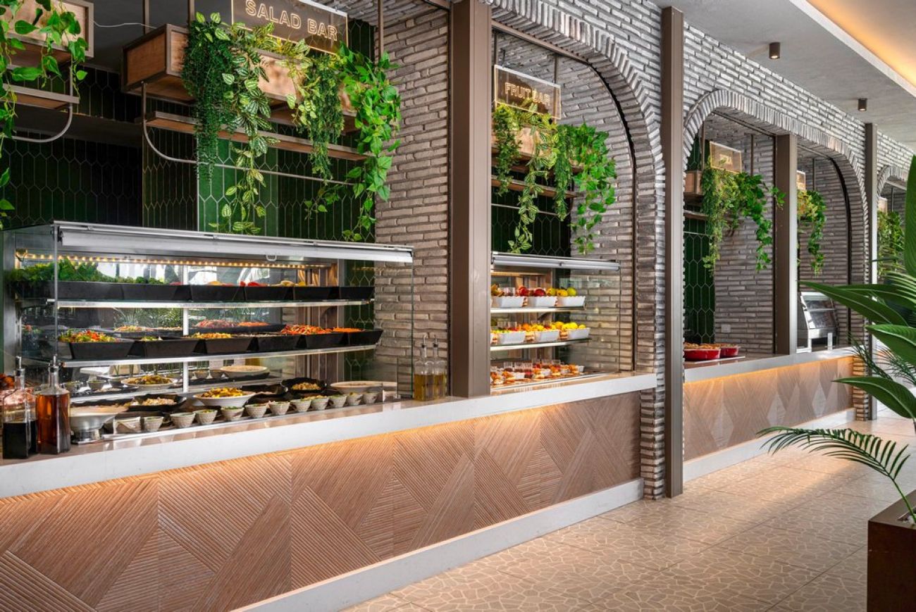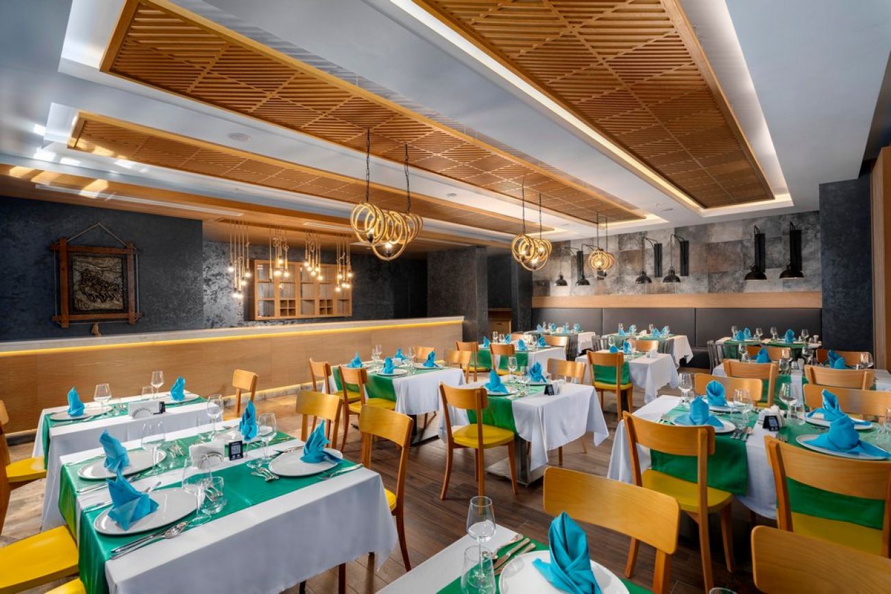 На разположение на гостите са основен ресторант (диетично и вегетарианско мню) и 5 a`лa карт ресторанта: Grill House, италиански, азиатски, средиземноморски (платен) и рибен (с предварителна резервация). Разнообразни напитки се предлагат в 5 бара (един работи днонощно), има и сладкарница.