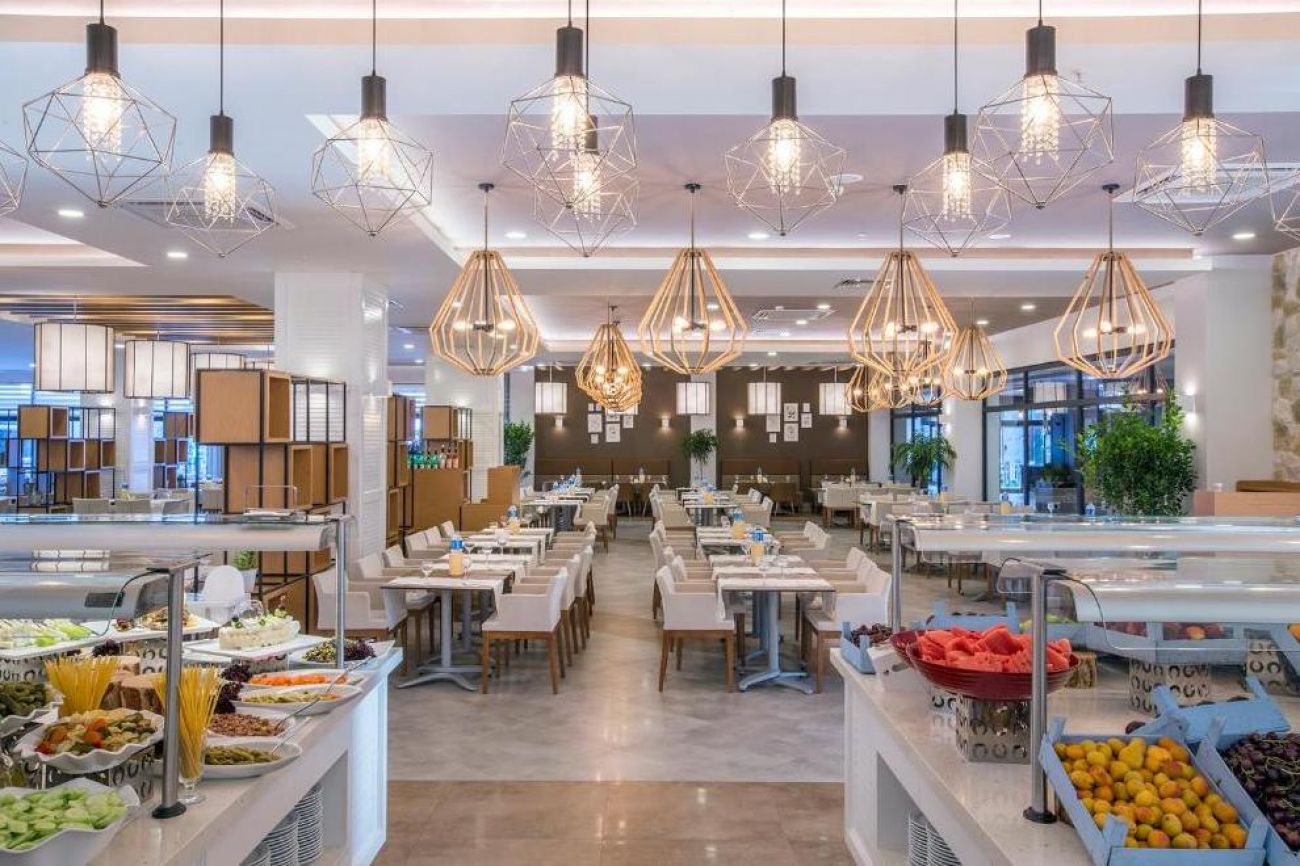 На разположение на гостите са основен ресторант и три а`ла карт ресторанта: барбекю (платен), рибен и китайски (1 безплатно посещение на 1 от ресторантите при минимум 7 нощувки). На разположение е снек ресторант и сладкарница (работи денонощно). Разнообразни напитки се предлагат в 4 бара - лоби бар, бар при басейна, бар на плажа, диско бар.