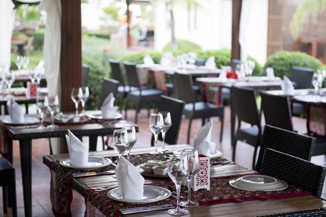 хотелът разполага с основен ресторант и 2 а`ла карт ресторант а, м които се поднася морска и италианска кухня. В бара на хотела се поднасят разнообразни напитки.