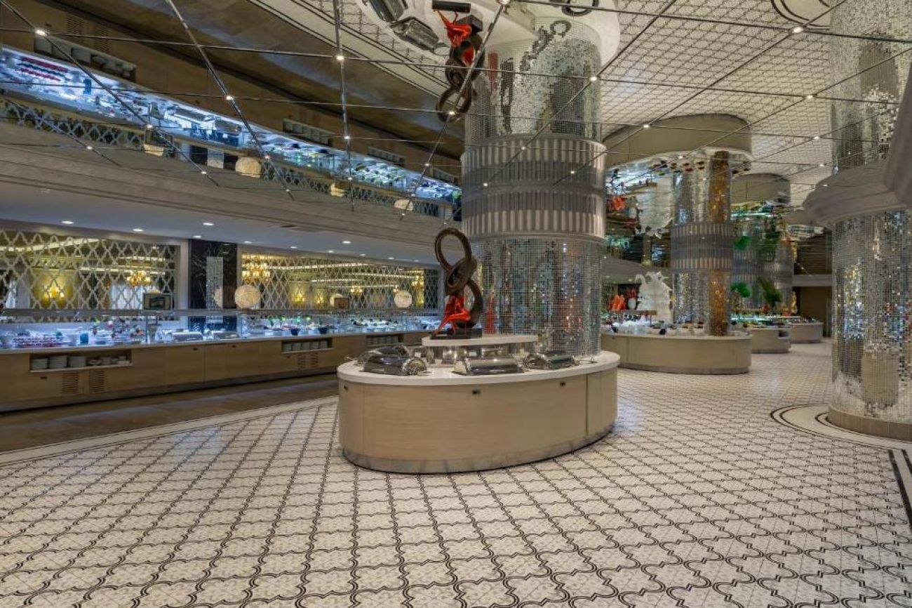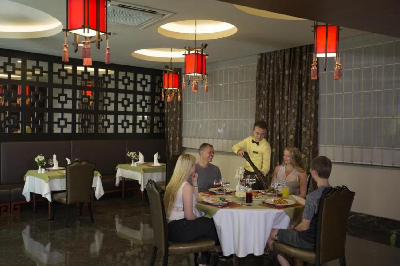 На разположение на гостите са основен ресторант Alhambra, в която се предлага закуска и вечеря, Bistro за късна закуска и нощна закуска, снек бар. 5 а`ла карт ресторанта: Fettucine - италиански, Miyako - далекоизточна кухня, Kuzine - турска кухня, Captain - рибен, La Viva Fiesta - мексикански. Освежаващи напитки и закуски се предлагат в 6 бара, дин от който работи денонощно.