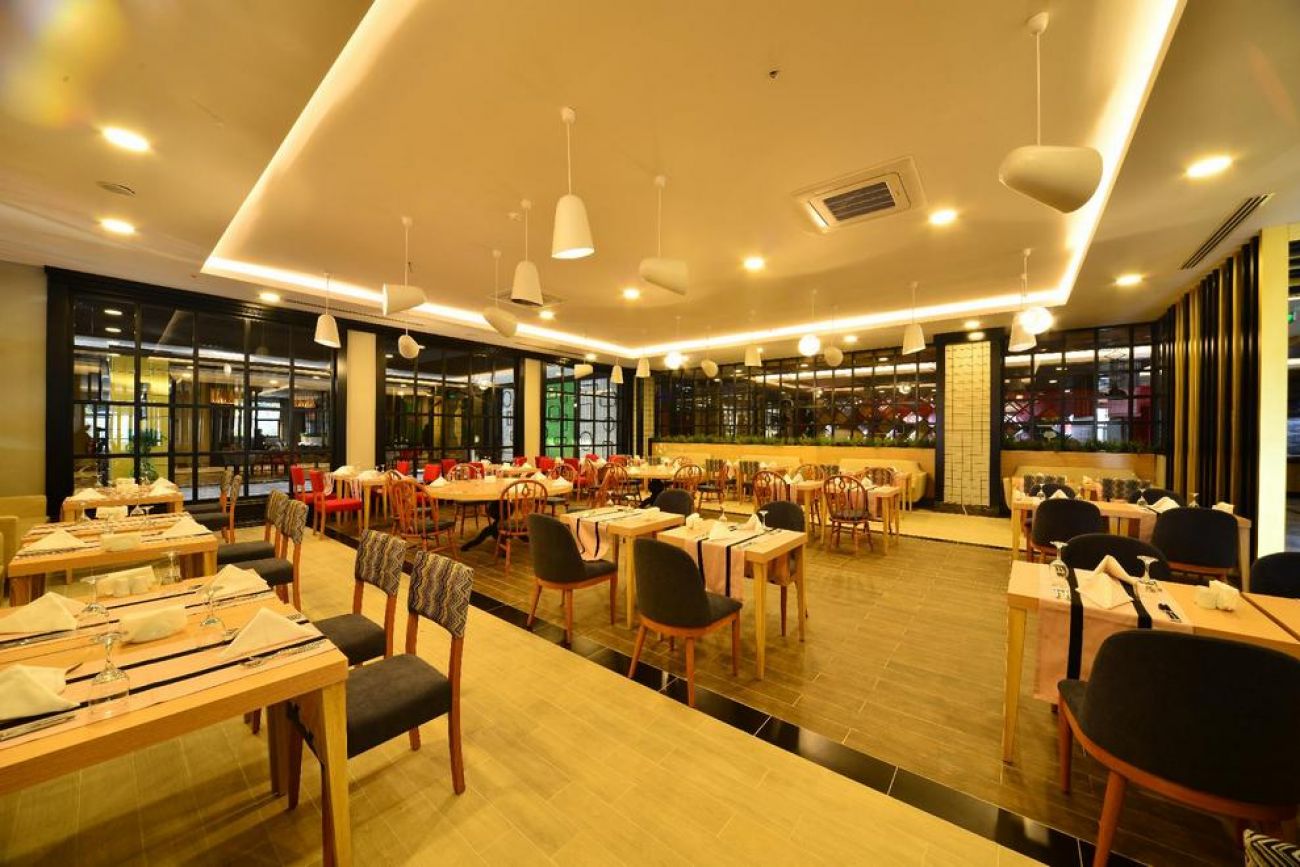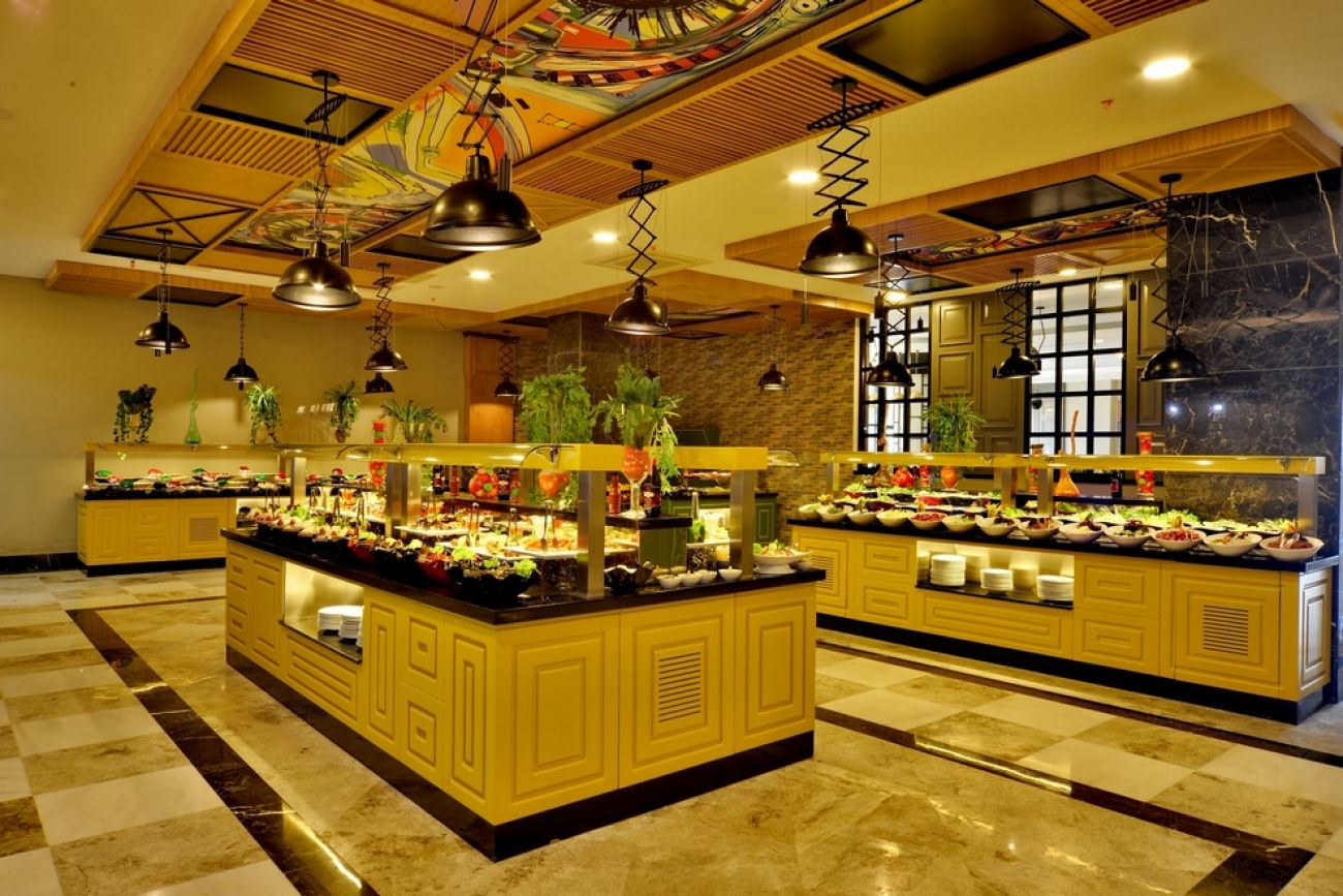 Хотелът има основен ресторант, който работи: закуска - 07:00-10:00 ч., късна закуска - 10:00-10:30 ч., обяд - 12:30-14:00 ч., закуски в снек бара се поднасят между 12:30-15:00 ч., чай и сладки в снек бара - между 11:00-18:00 ч., вечеря - 19:00-21:00 ч., късна вечеря - 23:00-23:30 ч. А`ла карт ресторанти: турски ресторант, италиански ресторант и азиатски ресторант. Работят от 19:00-21:00 ч. Възможно е безплатно посещение на един от ресторантите веднъж в седмицата, като е необходима предварителна резервация. Барове: лоби бар, бар при басейна, бар на плажа, снек бар, диско бар.