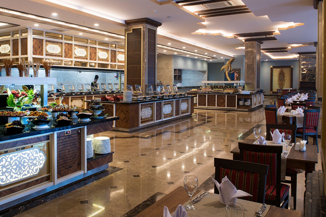 На разположение на гостите е основен ресторант, отворен за закуска, късна закуска, обяд, вечеря и късна вечеря. 3 а`ла карт ресторанта: турски, италиански, рибен (1 безплатно посещение на 1 от ресторантите при минимум 7 нощувки, с предварителна резервация), 2 снек ресторанта и сладкарница. Разнообразни напитки се предлагат в 3 бара - лоби бар, бар при басейна и бар на плажа.