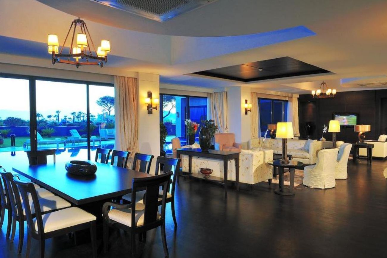 2 VIP Villas - 4 спални, една от които разполага с джакузи и дрешник, всекидневна, кът за хранене, кухня, бар, система за домашно кино, стая за иконом, фитнес кът, сауна, парна баня, открит и закрит (отопляем) басейн, люлка, хамак, безплатно посещение на а`ла карт ресторантите, иконом, безплатно химическо чистене, луксозна козметика Bvlgari & Molton Brown, 750 кв.м
