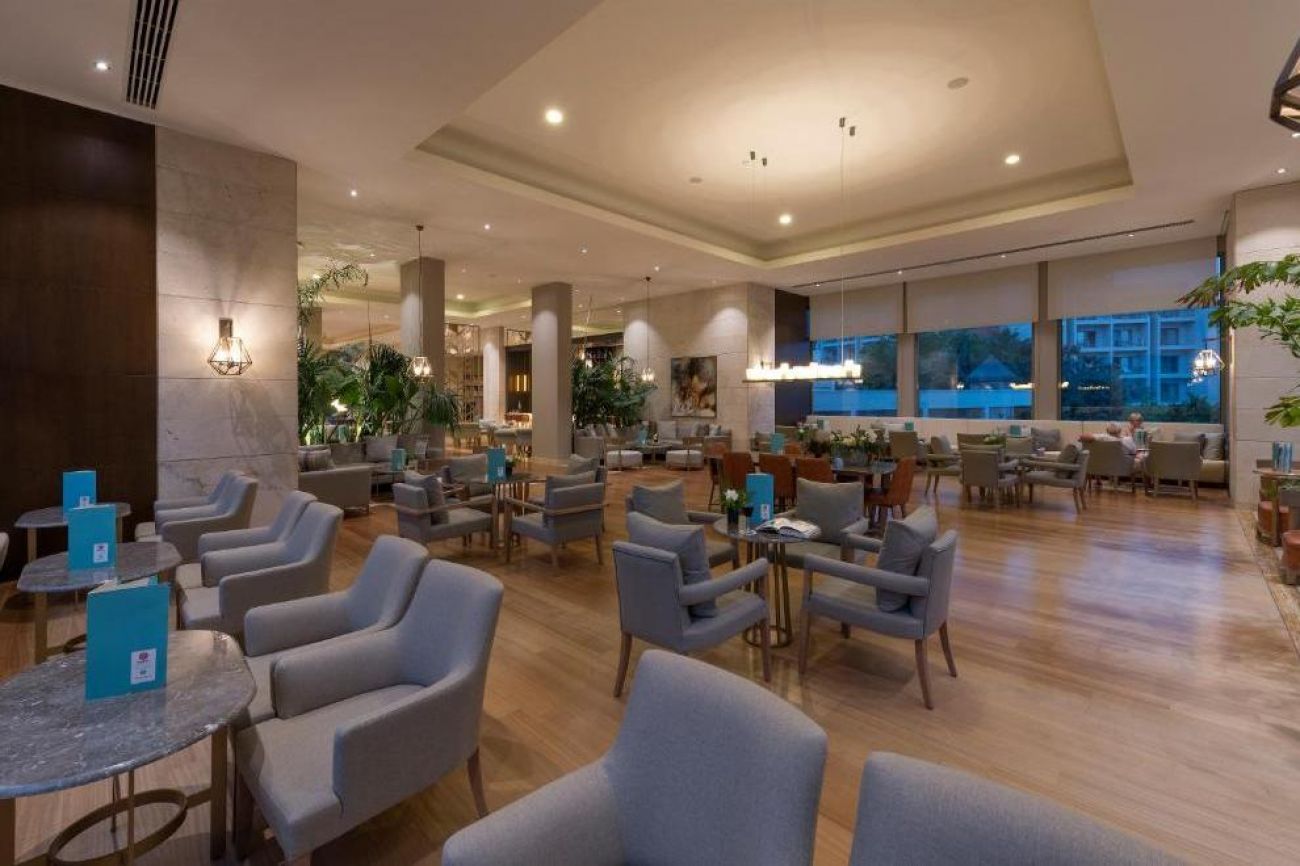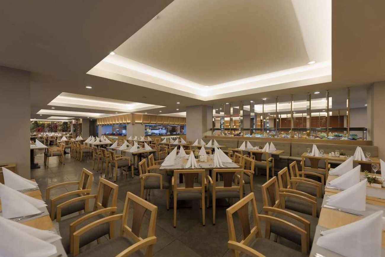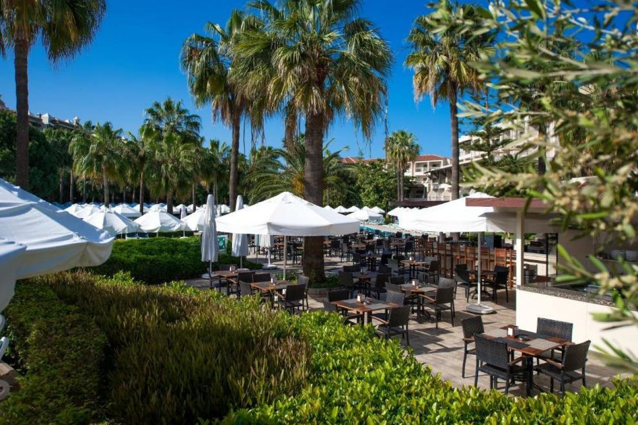 На разположение на гостите са основен ресторант и 4 а`ла карт ресторанта: Akdeniz - между народна кухня, Sofra - турска кухня, Sandal - рибен ресторант, Olive - италиански ресторант и суши ресторант. Освежаващи напитки и закуски се поднасят в 4 бара - лоби бар, бар на плажа, бар при басейна, Olive Bar.