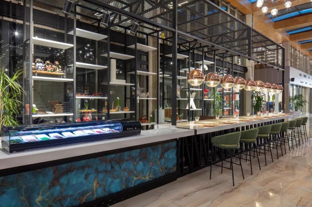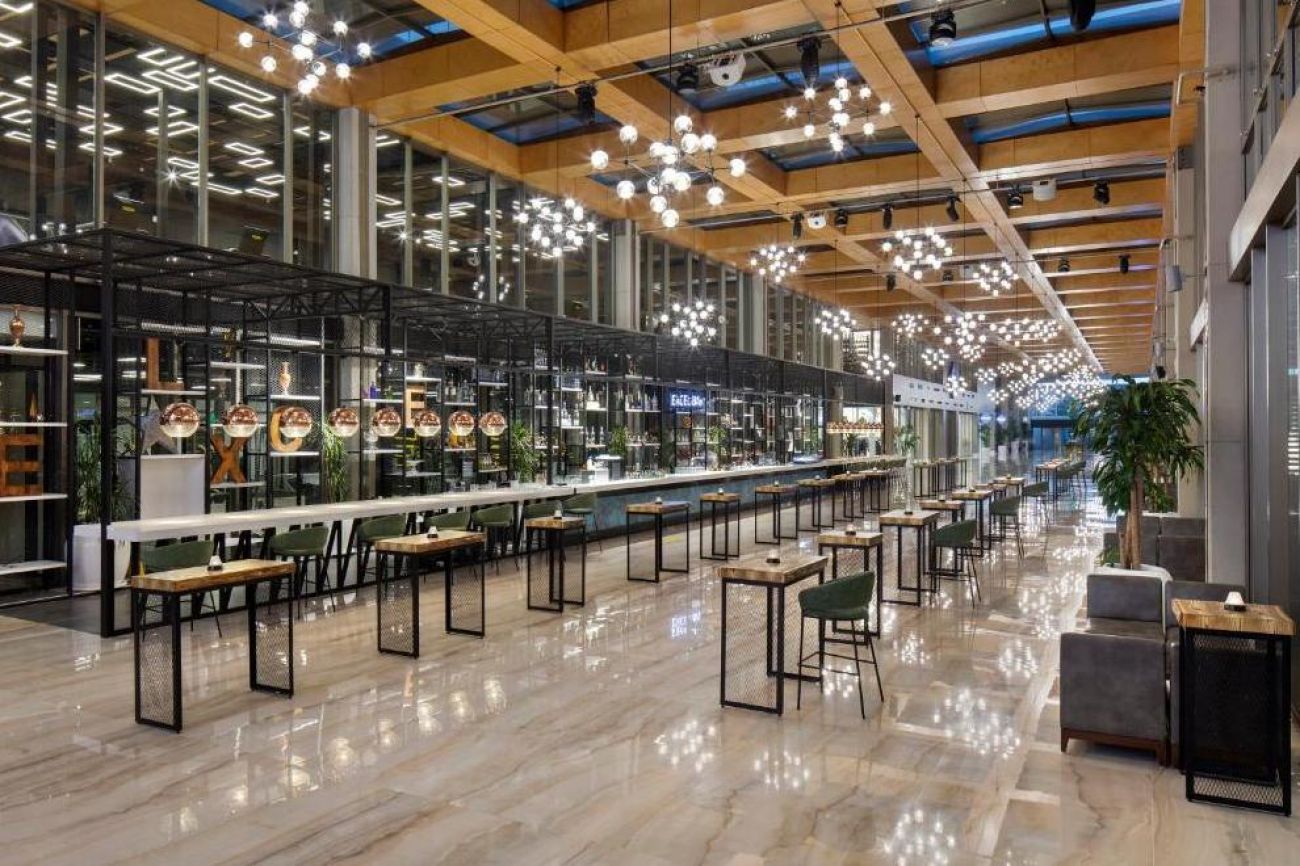 На разположение на гостите са основен ресторант COSMOS: закуска 07:00 -11:00 ч., обяд 12:30-14:30 ч., вечеря 19:00-21: 30 ч. Специална зона за семейства с деца. Детски бюфет 18:30-20:00 ч. Здравословен и диетичен кът в главния ресторант. Снек ресторант на плажа 12:00-16: „00 ч./16:00-18:00 ч. Ресторант за закуски Welldone (бургери и шейкове) 12:00 - 17:00 ч. Морският клуб предлага морски дарове, работно време 19:00-23:00 ч. WELLDONE Grill House & Dry Aged (Steakhouse), работно време 19:00-23:00 ч. МEDHOUSE, работно време 19:00-23:00 ч. ATLANTIS (а`ла карт ресторант за деца и семейства), работно време 18:30 - 21:30 ч. UKIYO (далекоизточна кухня, суши), работно време 19:00-23:00ч. Анталия (турска кухня), работно време 12:00 -21:30 ч. CH'İ (вегетарианска кухня), работно време 10:00 - 23:00 ч. Барове: City`s Lounge (предястия (храни) и напитки / библиотека) 09:00-24:00 ч. Exel Bar (суши, шампанско, вино, коктейли) 12:00 - 02:00 ч. Ирландски пъб - работи денонощно. Бутик Dolce Gelato (пресен домашен италиански сладолед) 11:00 - 24:00ч. Кафене Cafe Avenue (асортимент от кафета) 10:00-24:00 ч. Atelier Chocolat (пресен ръчно изработен шоколад) 12:00-22:00 ч. Starbucks (топло и студено кафе) 10:00 - 24:00 ч. Къща за цветя (прясно сварени чайове) 11:00 - 17:00 ч. Сладкарница Le Petit (торти, бисквити, турски сладки, сладолед) 10:00-24:00 ч.
