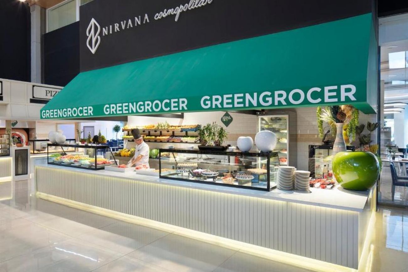 Хотелски комплекс Nirvana Cosmopolitan разполага със собствен кей, който води от собствения плаж към Средиземно море. Има и покрит бар на плажа с дивани, на които гостите могат да релаксират с питие. За удобството на своите гости предлага два открити външни басейна и един вътрешен.