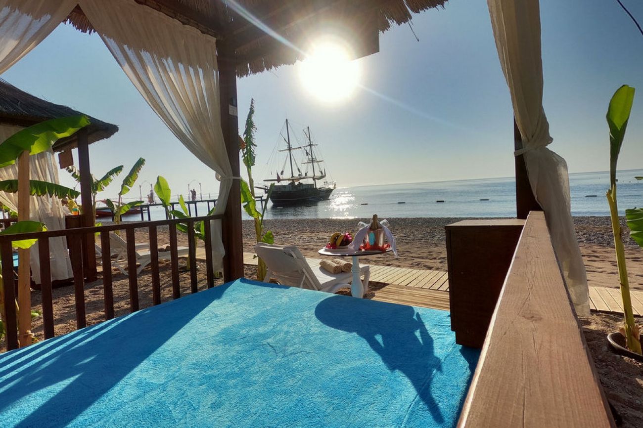 Хотелът има собствен пясъчно-чакълест плаж с кей. Три открити басейна, бар на плажа.