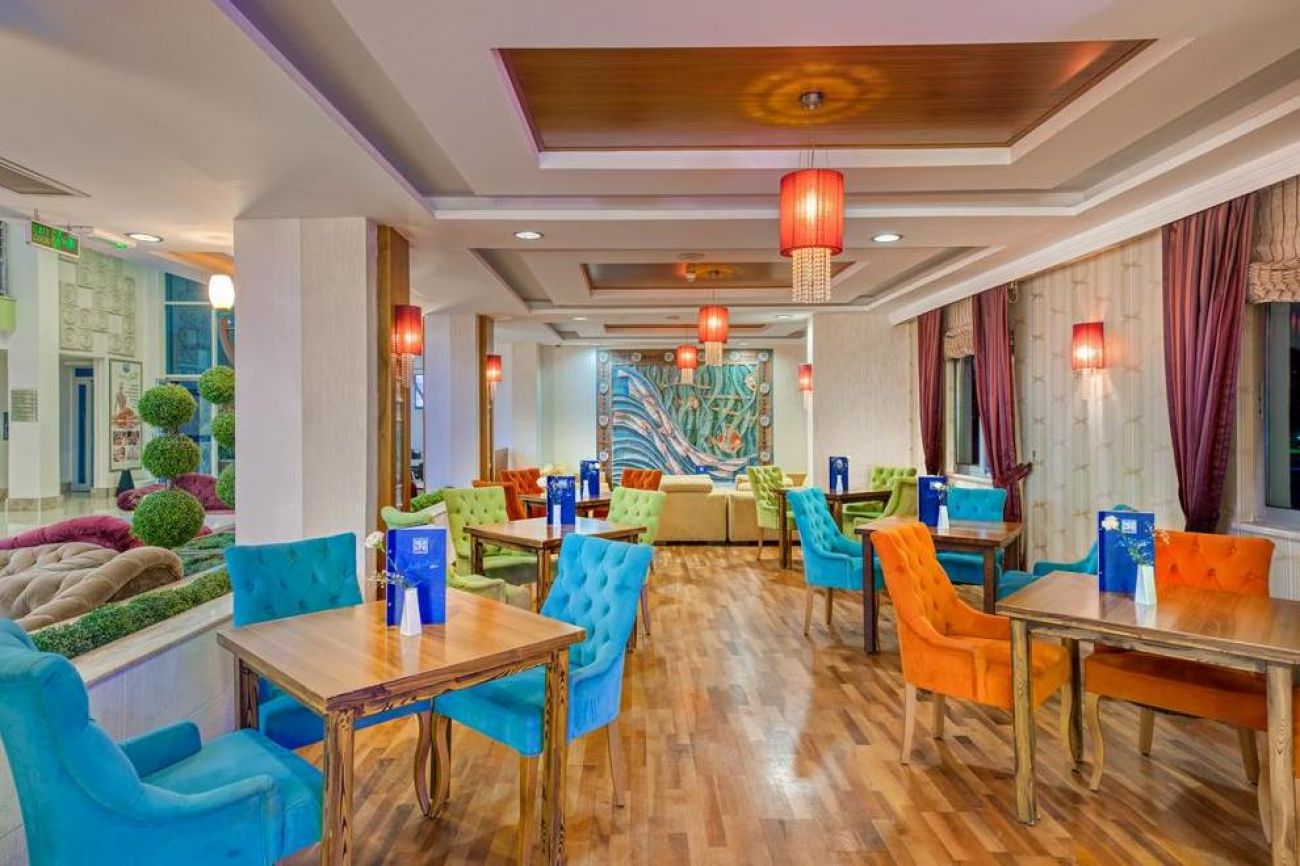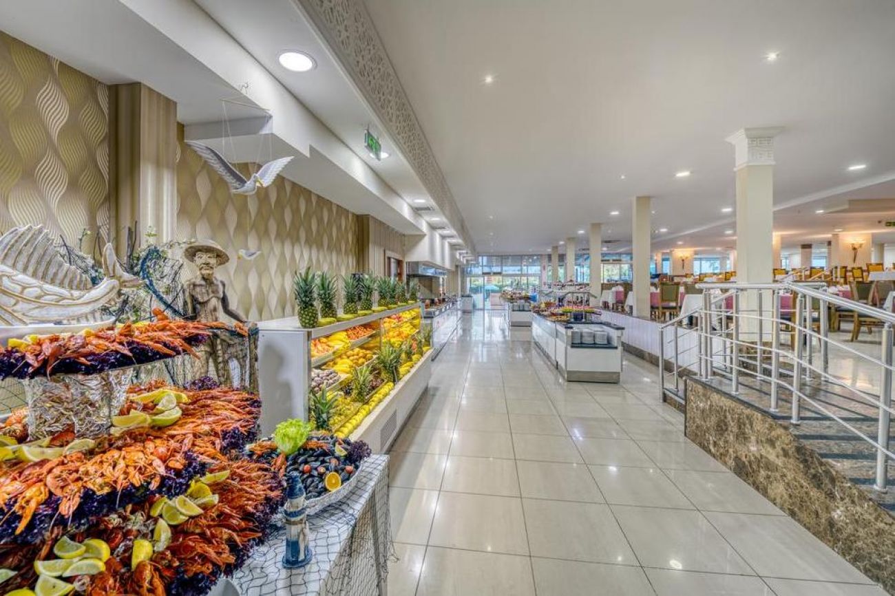 Основният ресторант на хотела работи: закуска 07:00-10:00 ч., късна закуска 10:00 - 10:30 ч., обед 12:30-14:00 ч., закуски (в Снек бара) 12:00 - 16:00 ч./16:30 - 17:30 ч., вечеря 19:00-21:00 ч., късна вечеря 23:00 - 24:00 ч. Хотелът има още турски и рибен ресторант, които работят през летния сезон от 19:00 до 21:00 ч. Има също няколко бара, дискотека и бистро. Лоби бар: работи 10:00-00:00 ч. Service Bar: работи 10:00-00:00 ч. Диско бар: работи 00:00-02:00 ч.