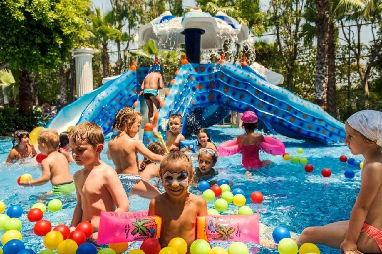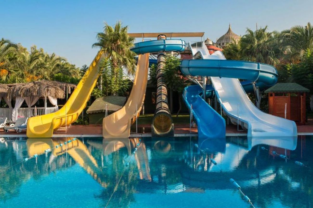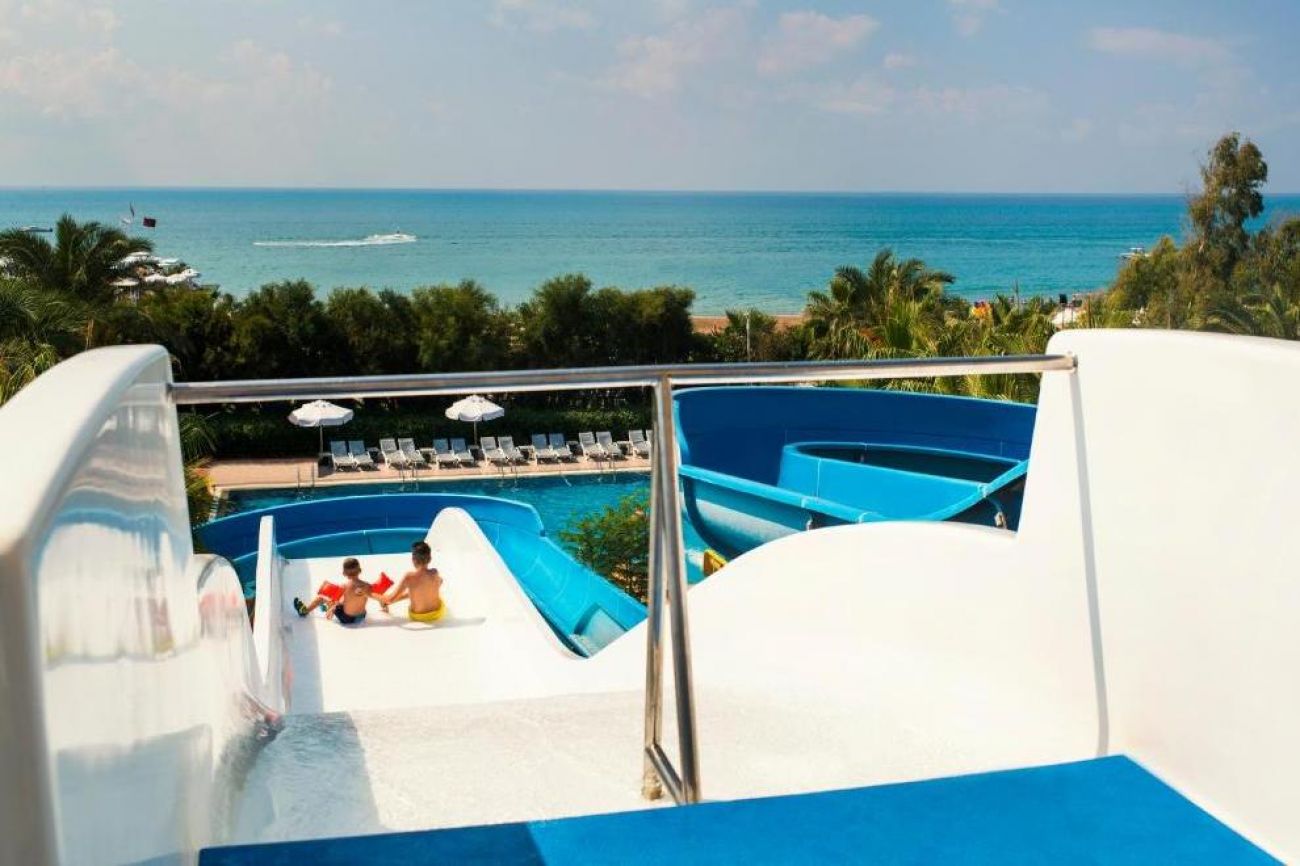 Разположен на първа линия на брега на Средиземно море в Анталия, хотелът разполага със собствен плаж, 5 басейна и тераса за слънчеви бани.