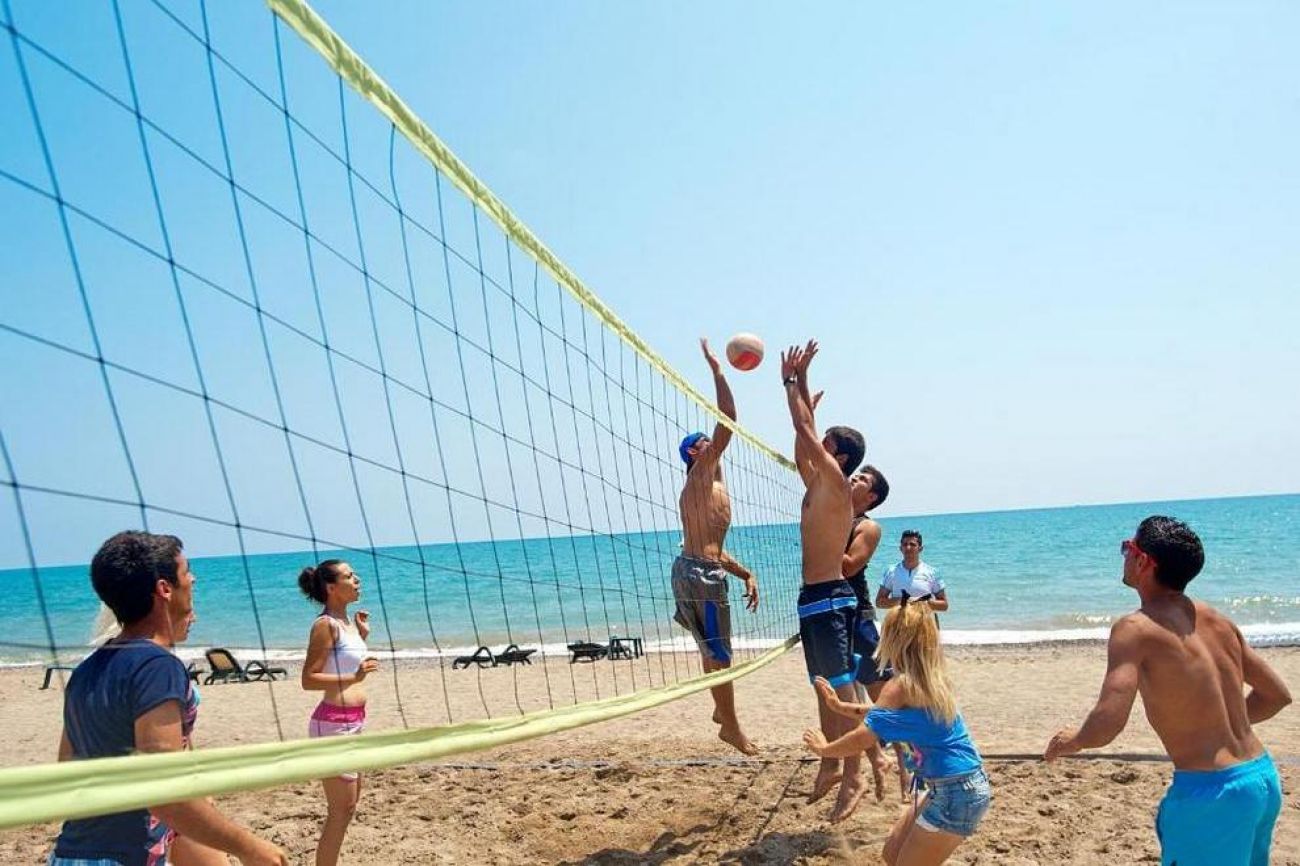 Собствен пясъчен плаж с дължина 250 метра. 2 открити басейна, закрит басейн, аквапарк, 5 водни пързалки и тераса за слънчеви бани. Безплатни чадъри и шезлонги на плажа и на басейна.