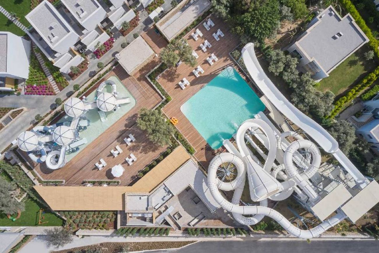 Хотелът се намира на собствен пясъчен плаж с два кея (1 кей само за възрастни над 16 год.). Има също 4 открити плувни басейна (1 само за Voyage Private, само за възрастни над 16 год.), 2 детски басейна. Аквапарк със 6 водни пързалки и мини аквапарк за малките гости. Чадъри, шезлонги, матраци и плажни кърпи при басейните и на плажа се предоставят безплатно.