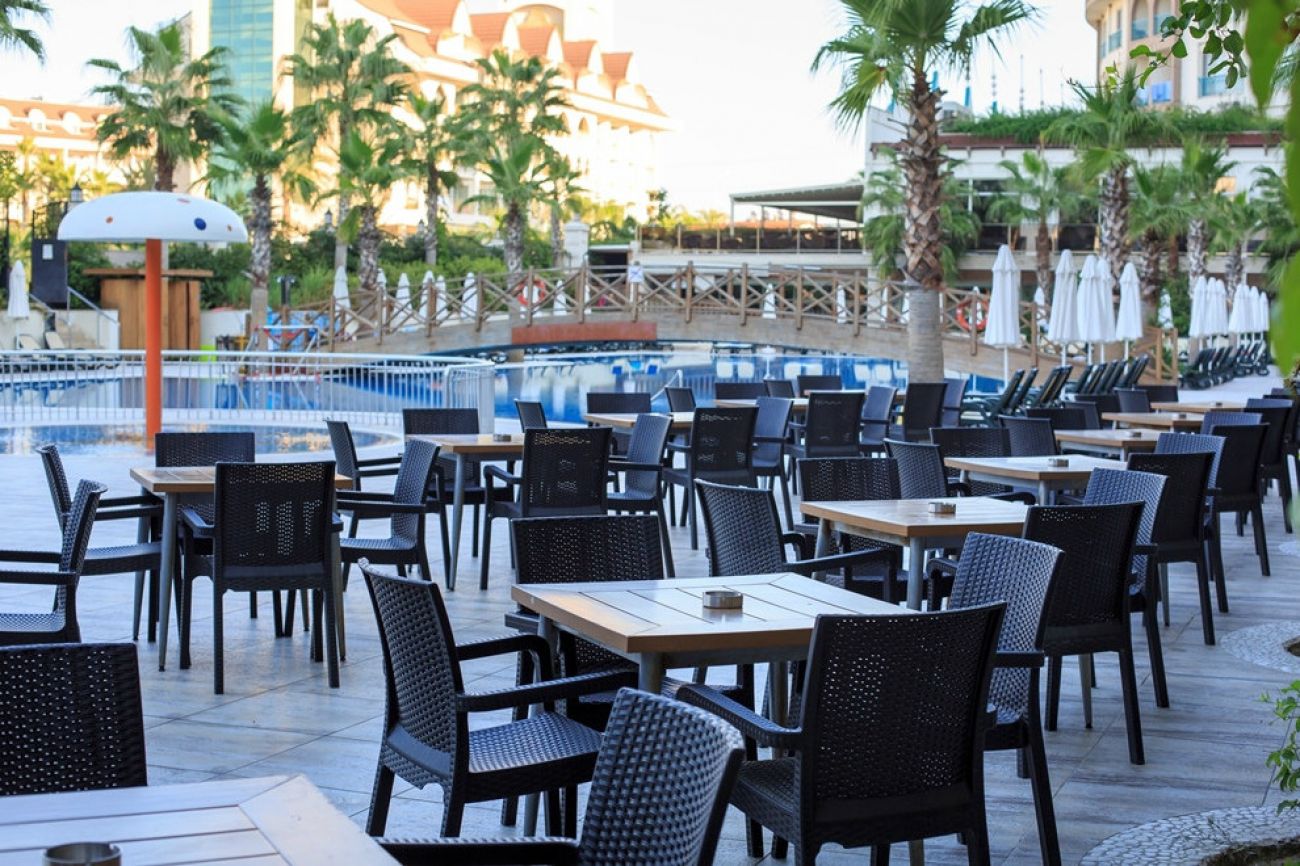 На разположение на гостите е основен ресторант за закуска, късна закуска, вечеря и нощна закуска. Снек барът на плажа работи от 12:30 до 17:30 ч. 2 а`ла карт ресторанта - турски и италиански. Разнообразни напитки се предлагат в 4 бара, единият от които работи денонощно.
